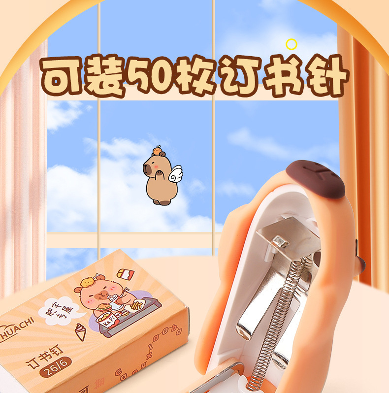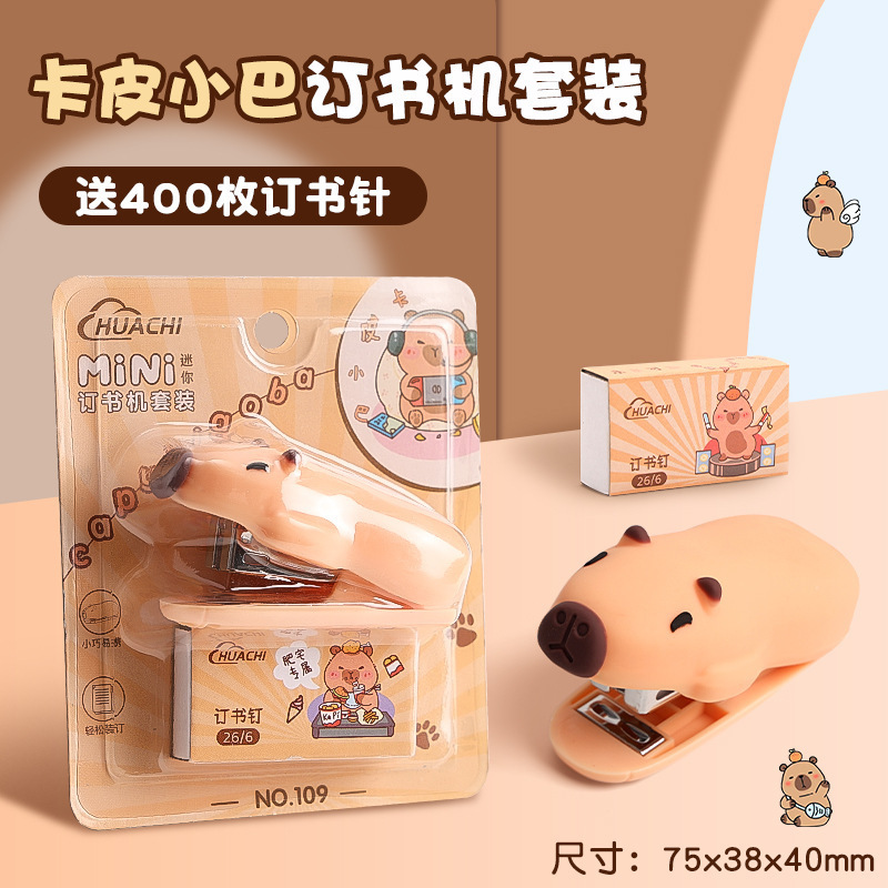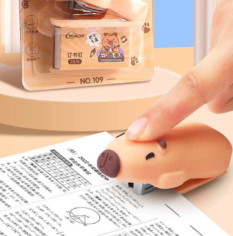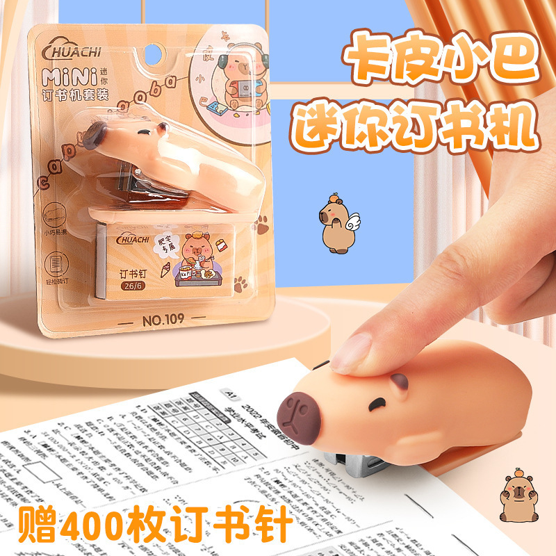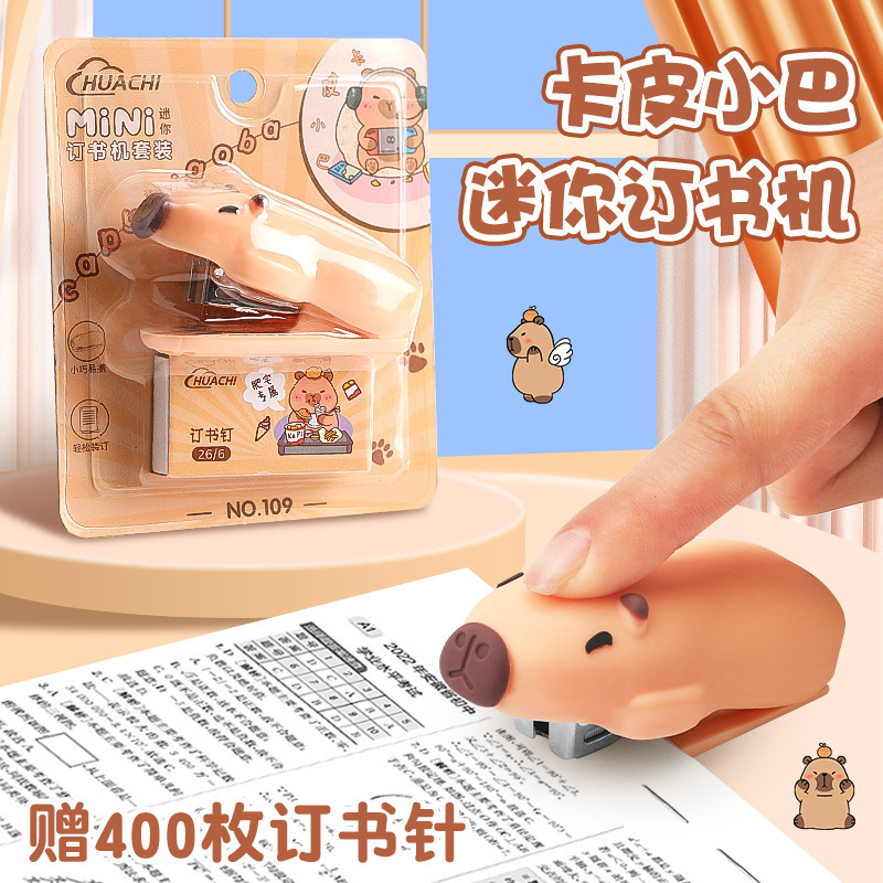 학생 학습을위한 미니 카피바라 스테이플러 스테이플 사무실 문구 용품 귀여운 만화 스테이플러