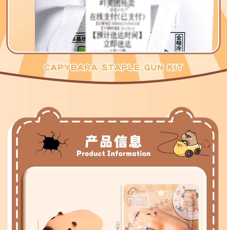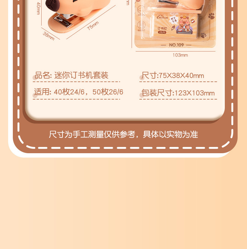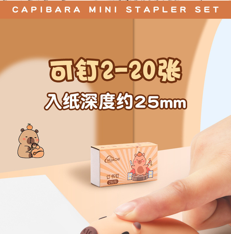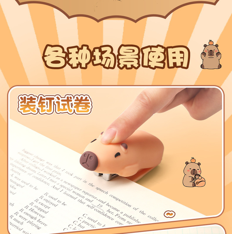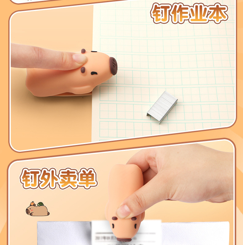학생 학습을위한 미니 카피바라 스테이플러 스테이플 사무실 문구 용품 귀여운 만화 스테이플러