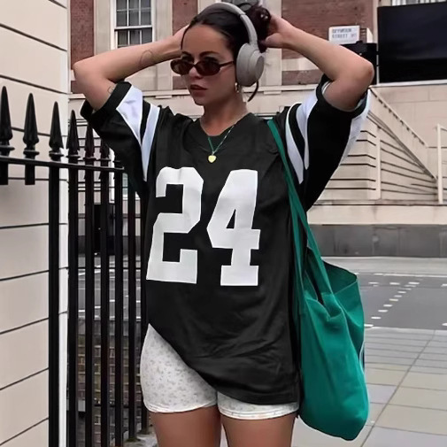 유럽과 미국의 국경 간 여름 여성용 V 넥 티셔츠 반팔 탑 3D 디지털 프린트 루즈 캐주얼 패션 다재다능한 패션