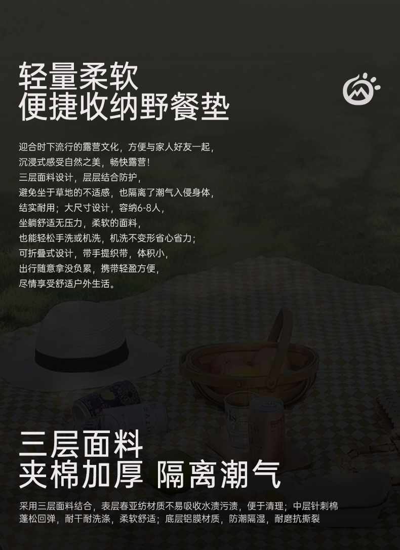 Tectop/tectop 야외 피크닉 매트 방습 매트 두꺼운 야외 캠핑 매트 기계 세탁 가능한 야외 방수 천