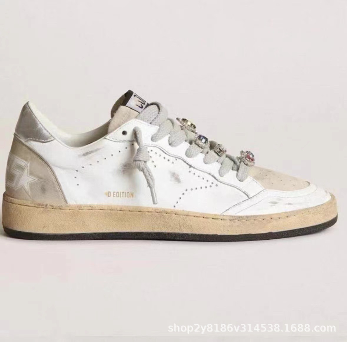 고급형 Tan Jianci의 같은 스타일의 비행선 비스킷 슈즈, 두꺼운 밑창, 레이스업, 안개꽃, 라인스톤, 여성용 키높이 화이트 슈즈만 제작