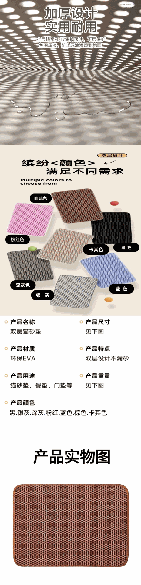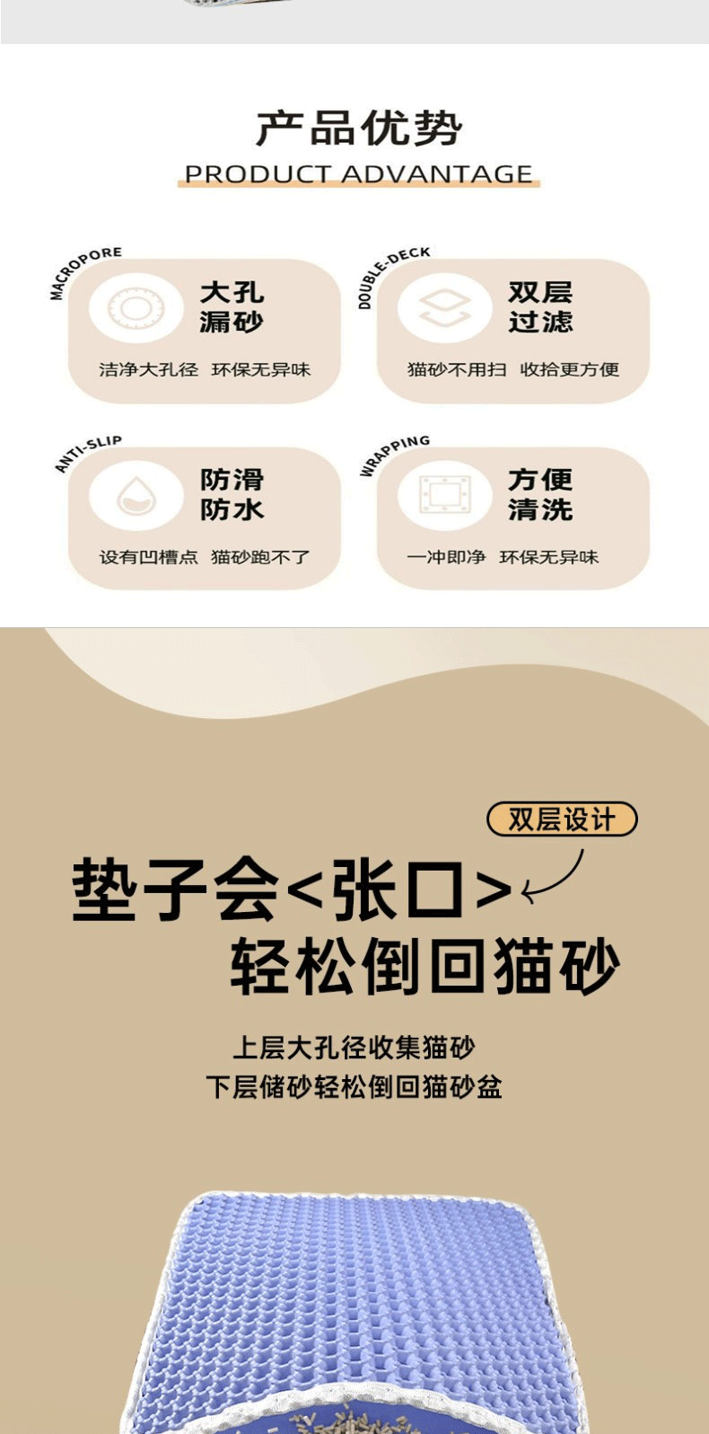 재고 있음 고양이 쓰레기 매트 더블 레이어 초대형 고양이 쓰레기 상자 매트 필터링 방지 물 튀김 방지 모래 제어 매트 용품