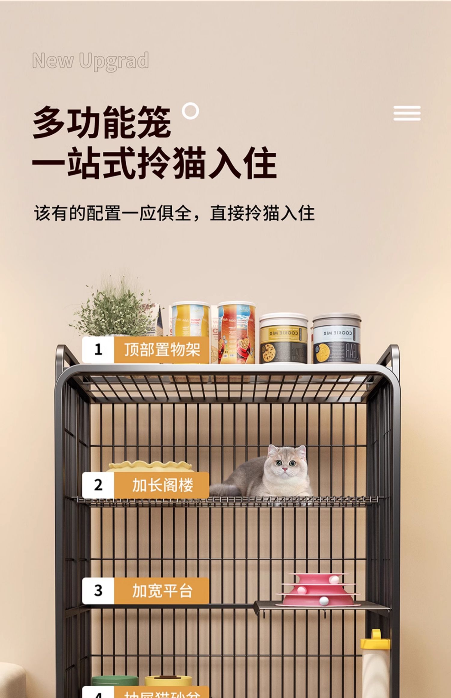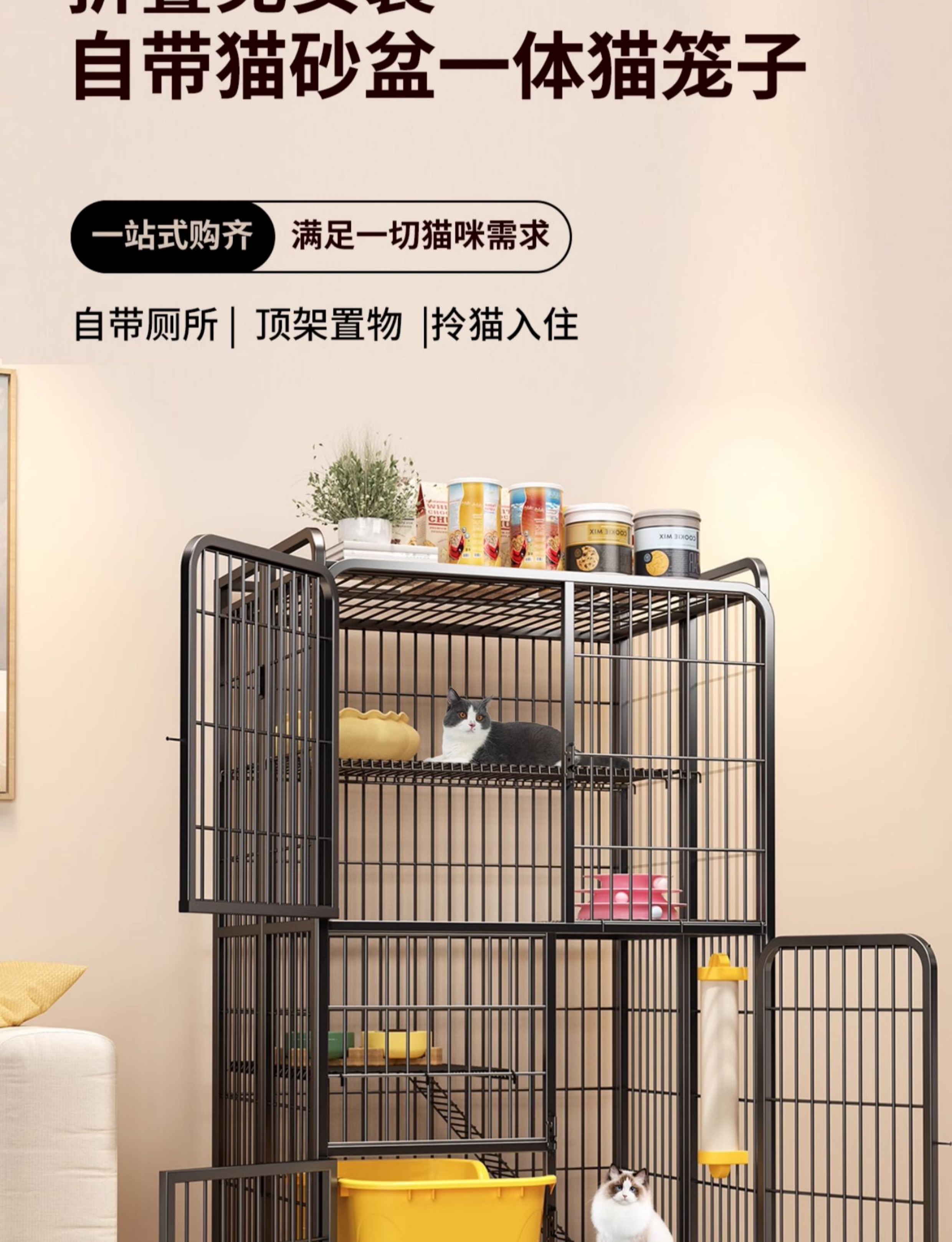 고양이 케이지, 가정용 실내 자유 공간, 화장실이 있는 고양이 빌라, 일체형 고양이 둥지, 고양이 집, 고양이 집 접이식