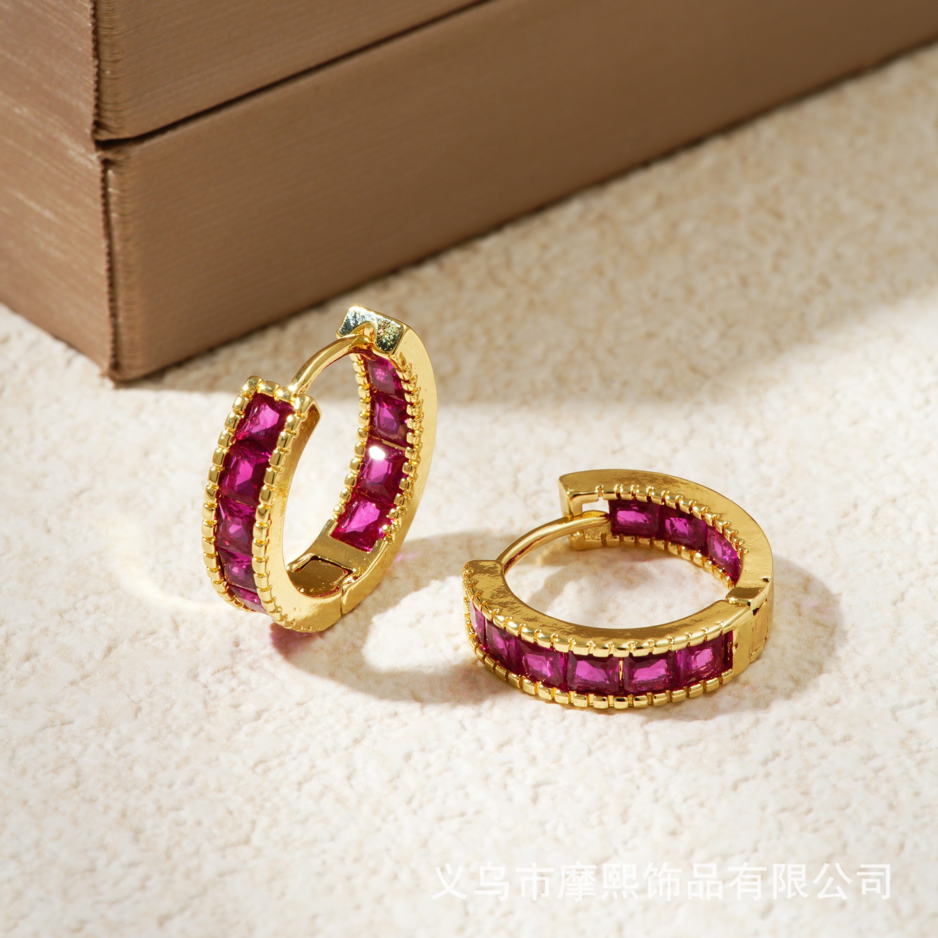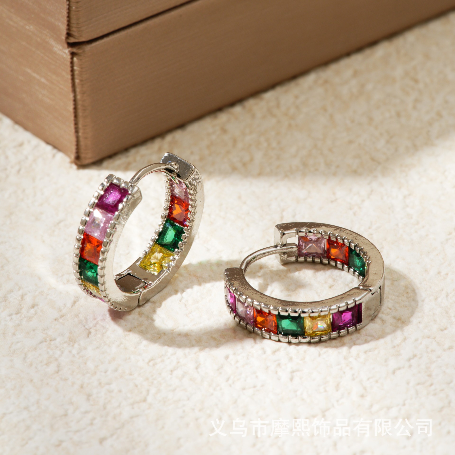MOXI 국경 간 새로운 맞춤형 다채로운 멀티 컬러 구리 상감 지르코늄 유럽과 미국 스타일의 세련된 맞춤형 다용도 귀걸이 귀걸이