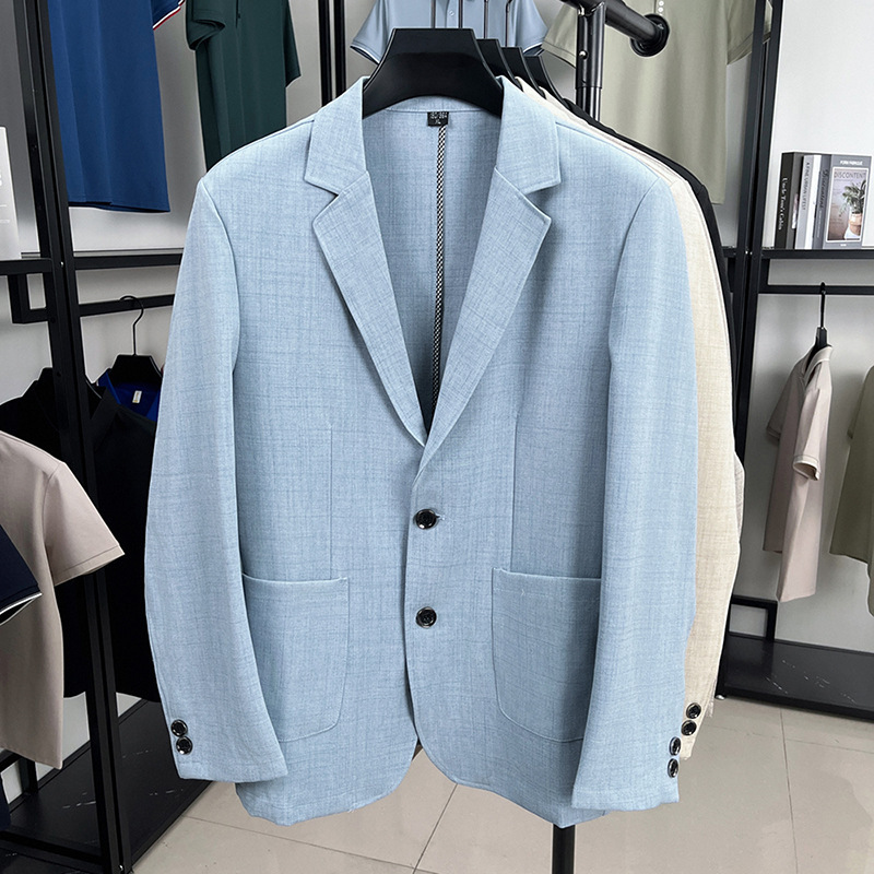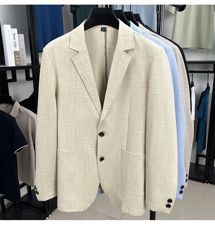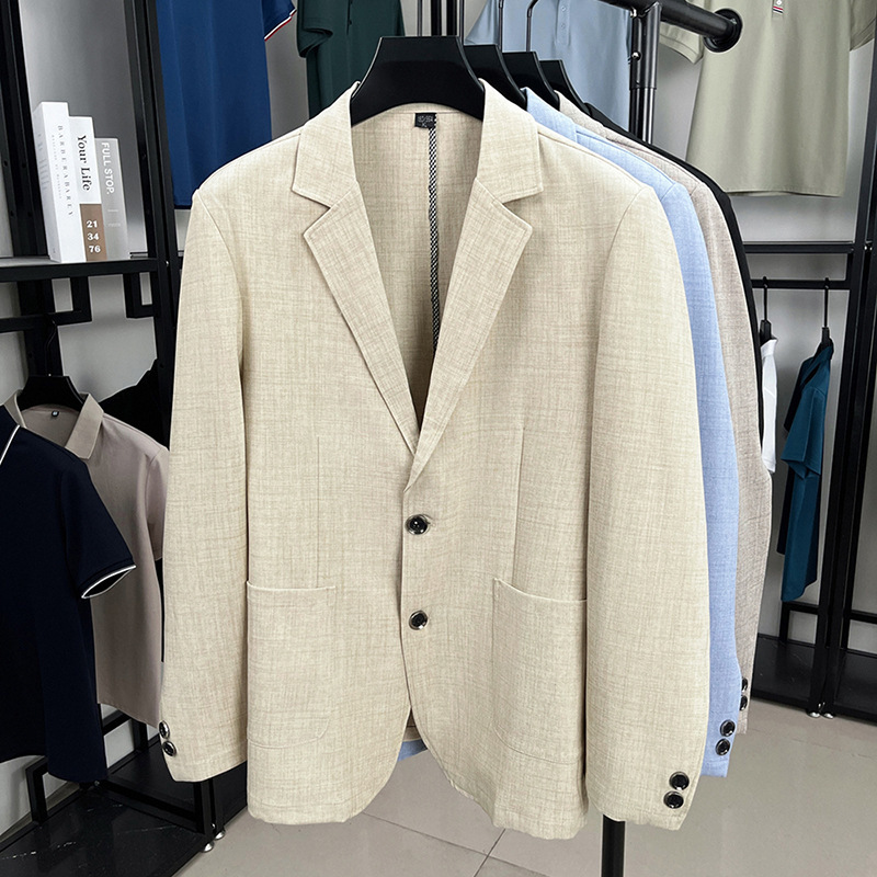 2025 새로운 한국 스타일 슬림 피트 리넨 정장 남성 봄, 가을 통기성 캐주얼 정장 재킷 유행