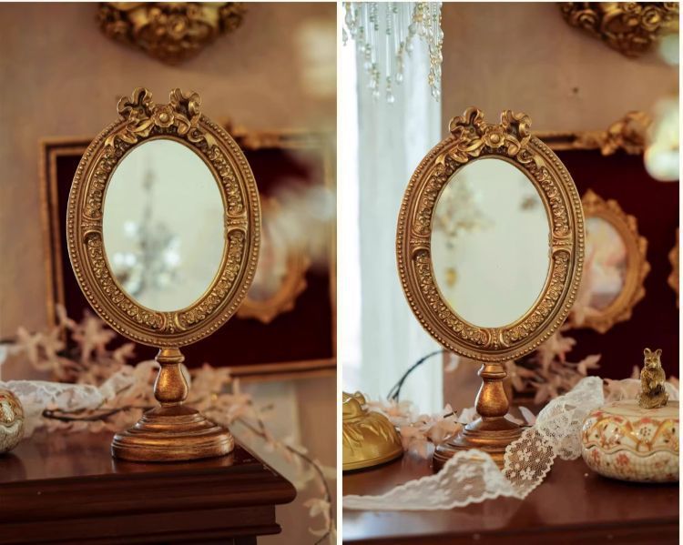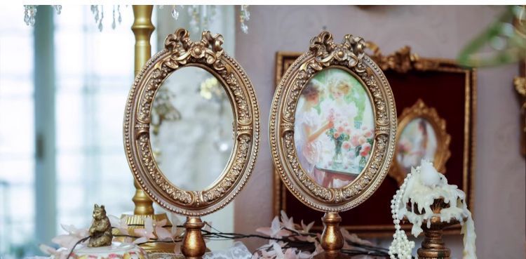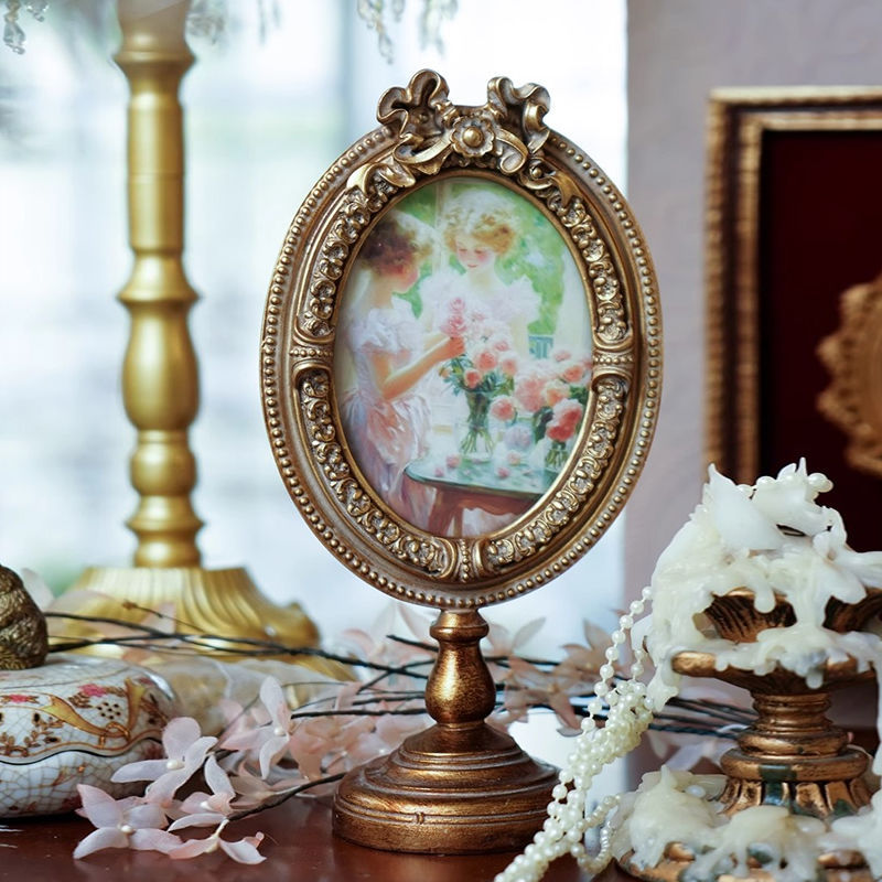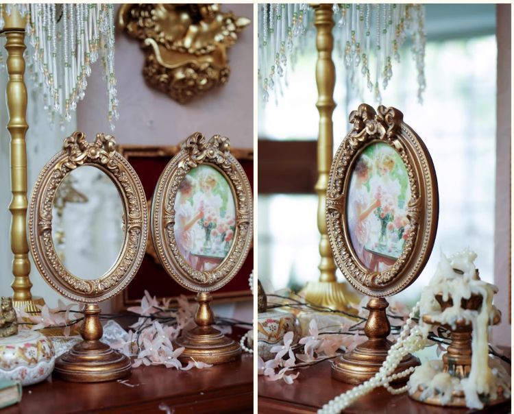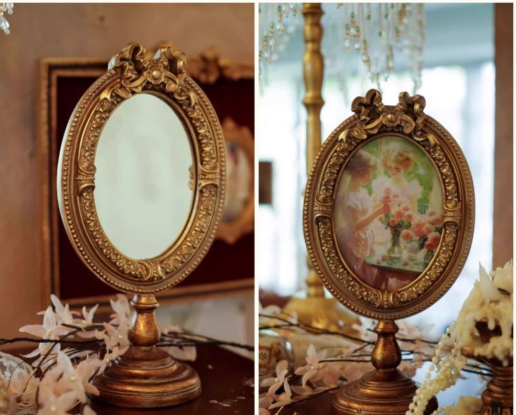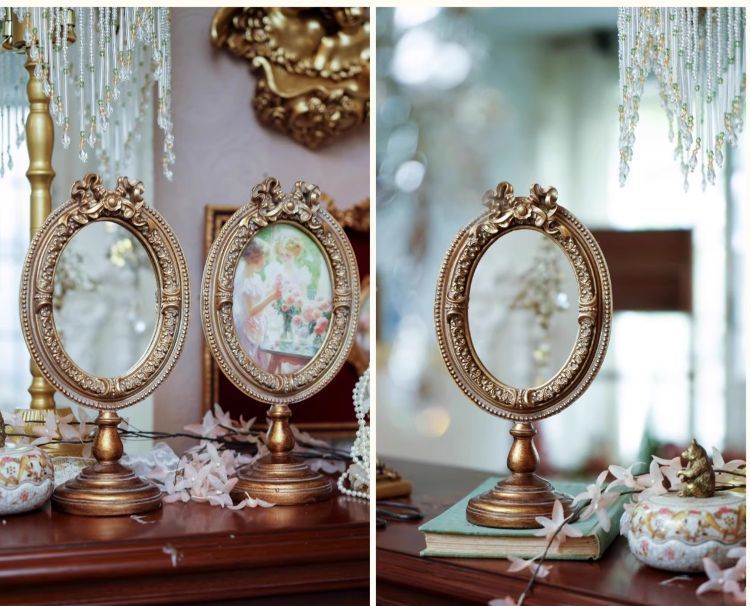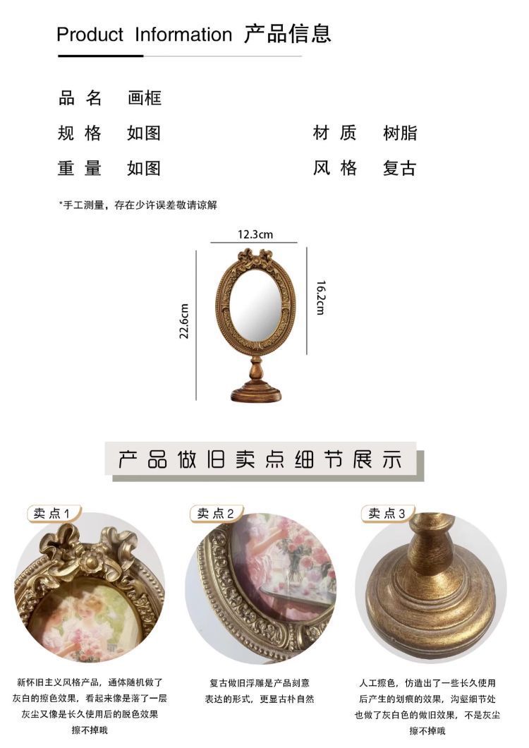 유럽 복고풍 조각 데스크탑 테이블 거울 촬영 소품 양각 사진 프레임 사진 프레임 화장대 거울 홈 가구