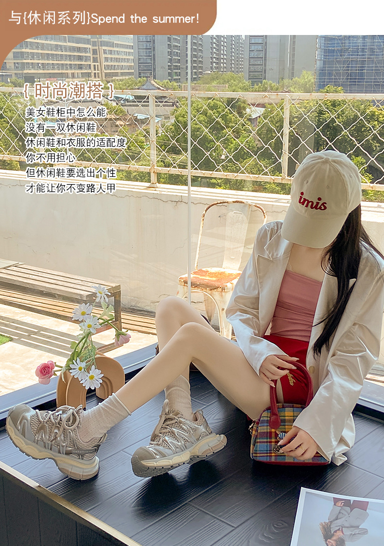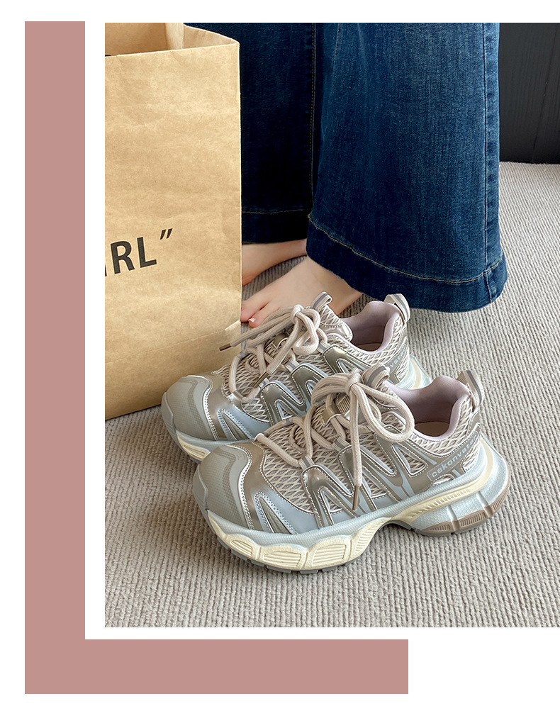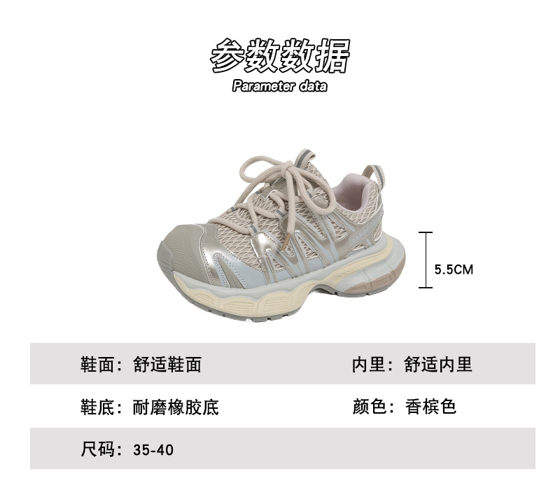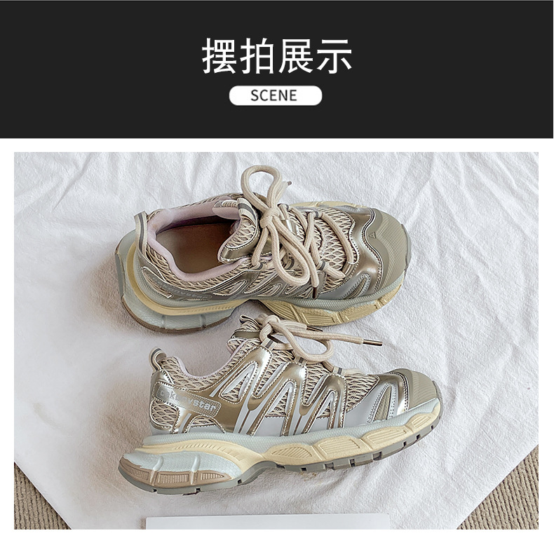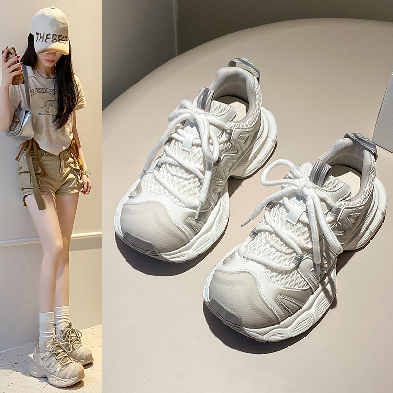 여성을위한 메쉬 통기성 아빠 신발 2025 여름 새로운 다목적 대형 두꺼운 밑창 경량 러닝 캐주얼 스포츠 신발