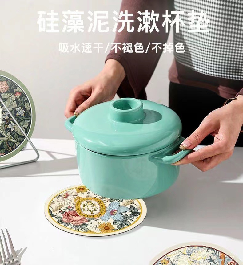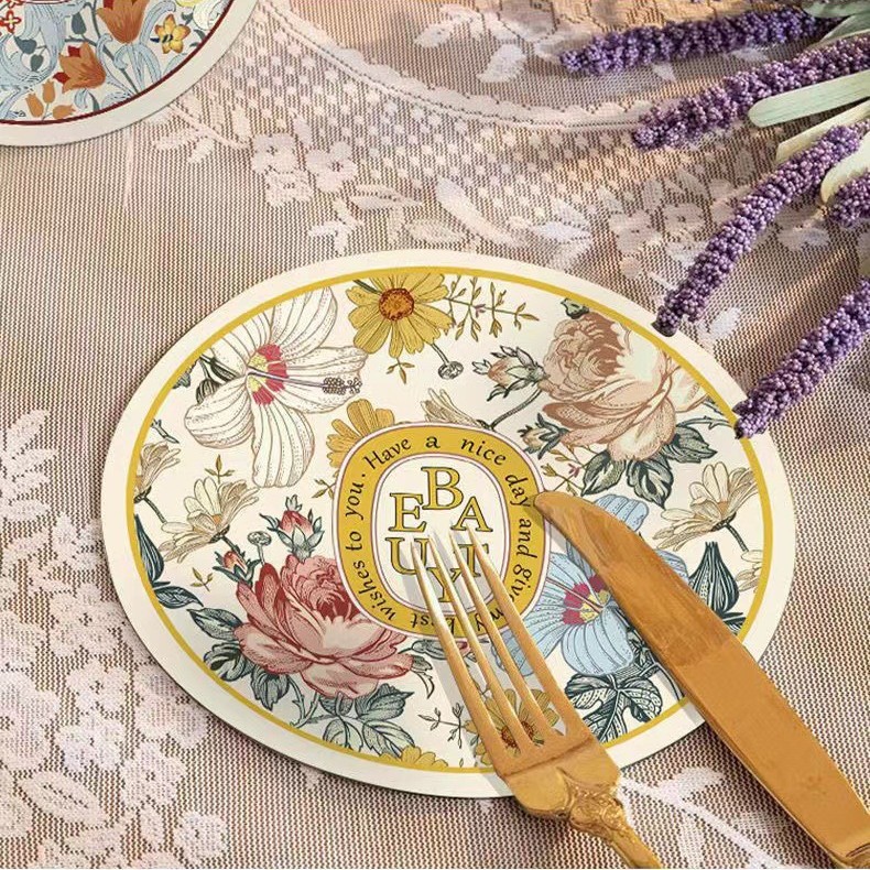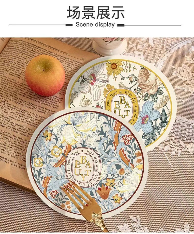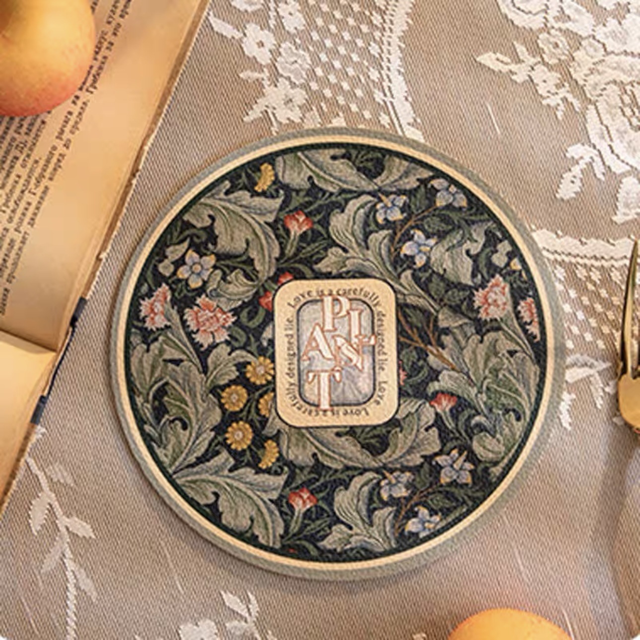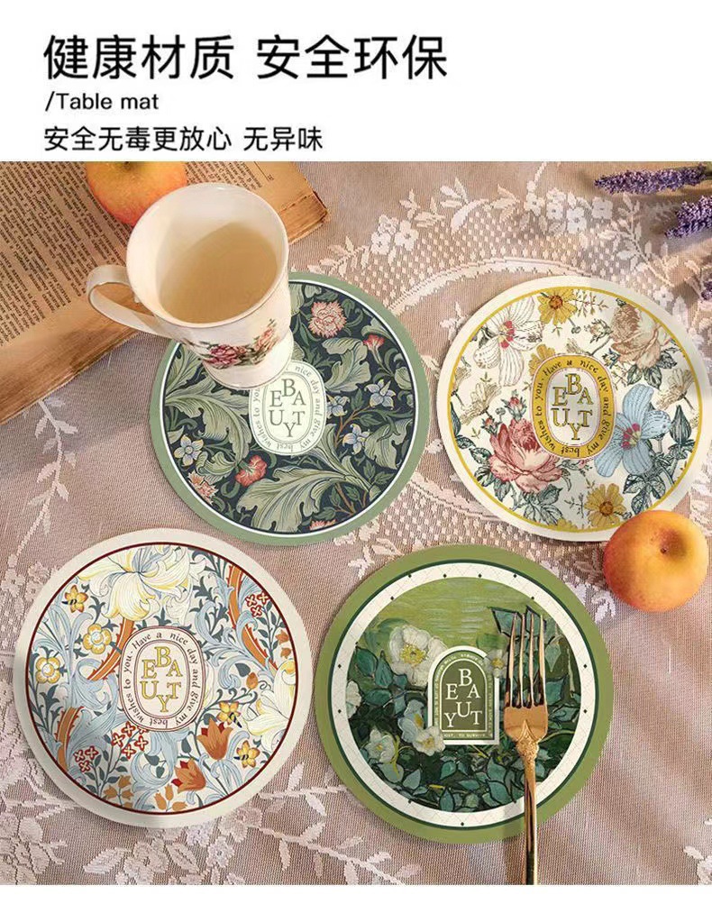 레트로 아메리칸 식탁 단열 냄비 매트 유화 둥근 작은 식탁 매트 세척 불가 방수 및 내유성 그릇 매트 접시 매트 워터 컵