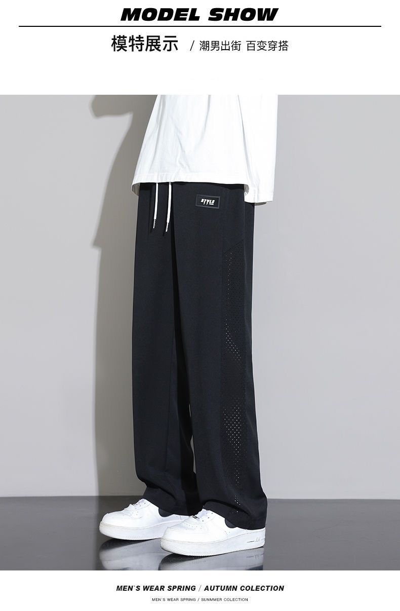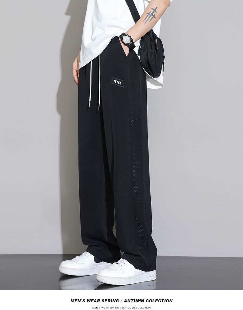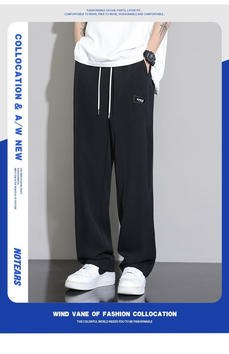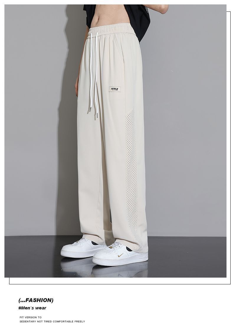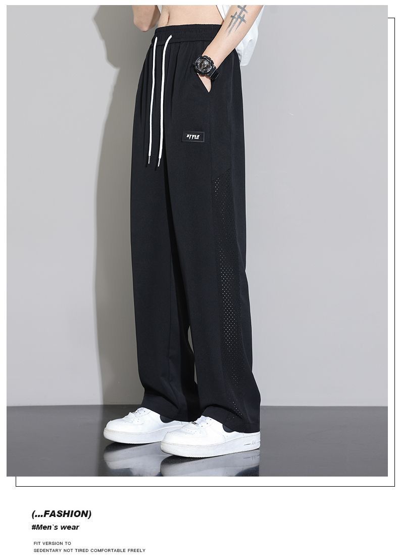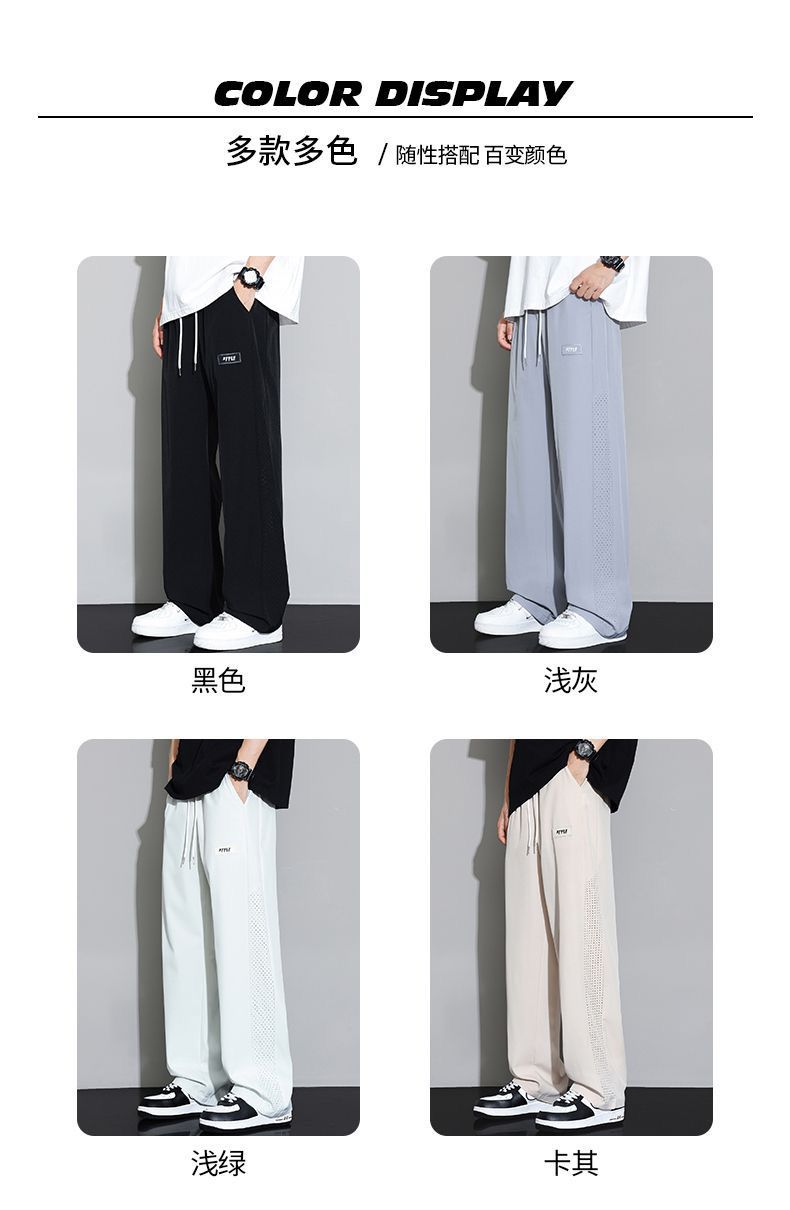 메쉬 아이스 실크 바지 남성 여름 얇은 통기성 느슨한 드레이프 와이드 레그 팬츠 여름 스포츠 스플 라이스 캐주얼 바지