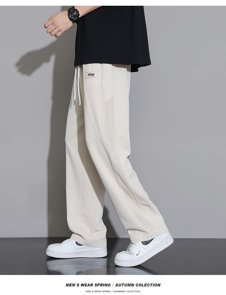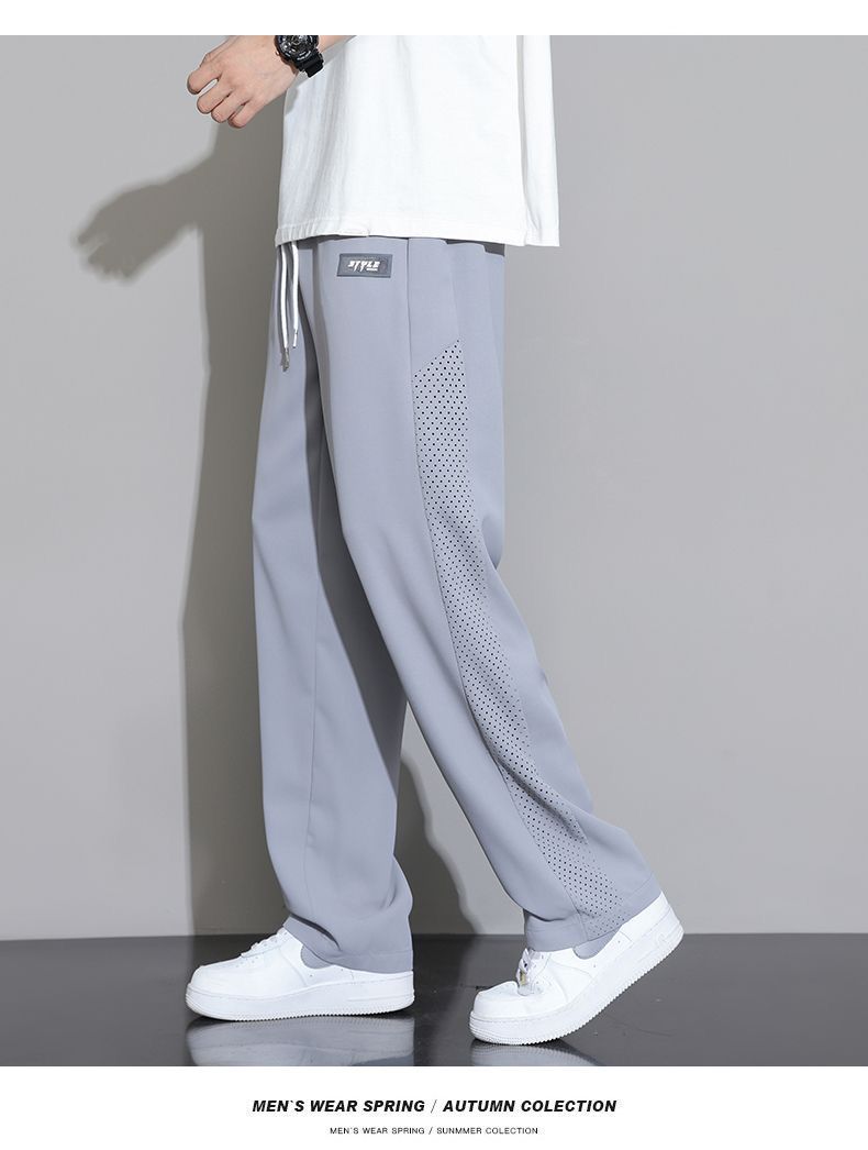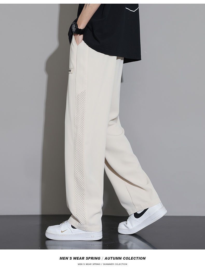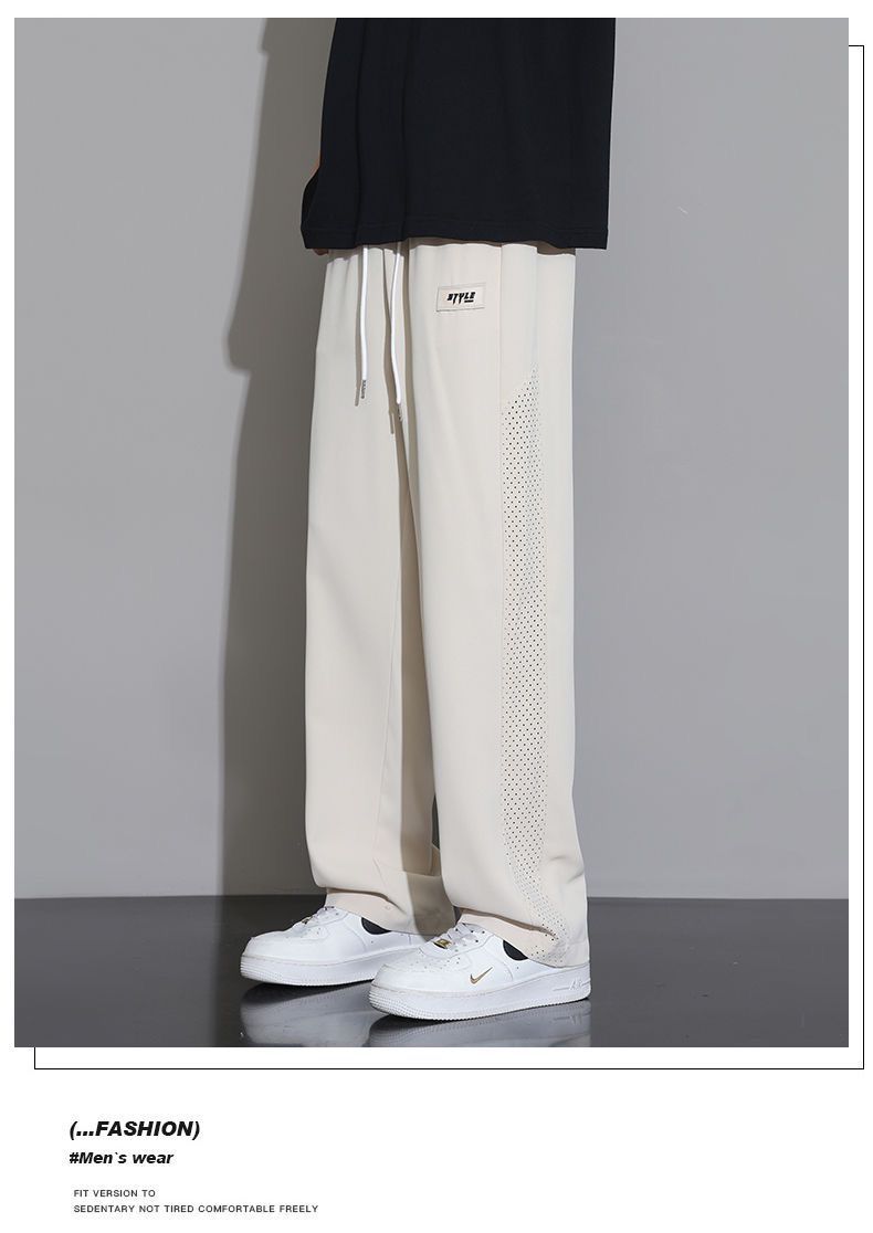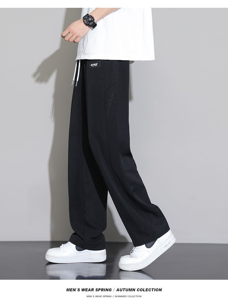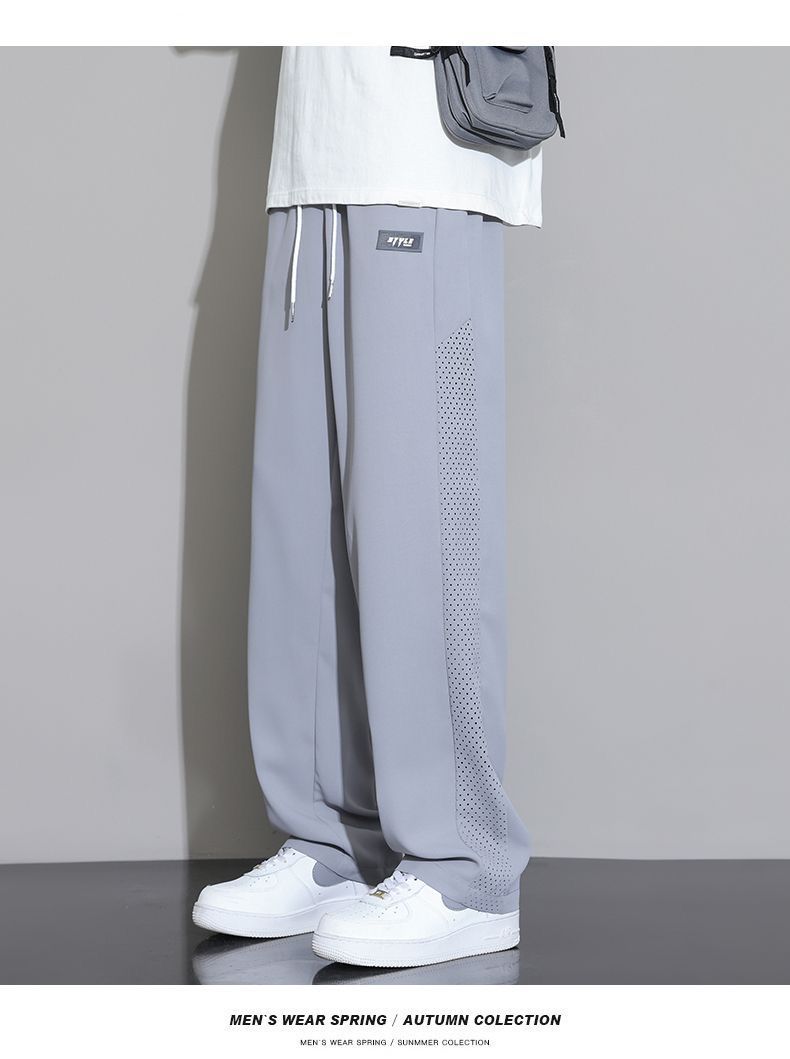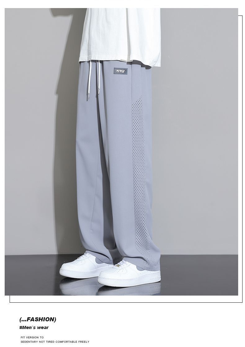 메쉬 아이스 실크 바지 남성 여름 얇은 통기성 느슨한 드레이프 와이드 레그 팬츠 여름 스포츠 스플 라이스 캐주얼 바지