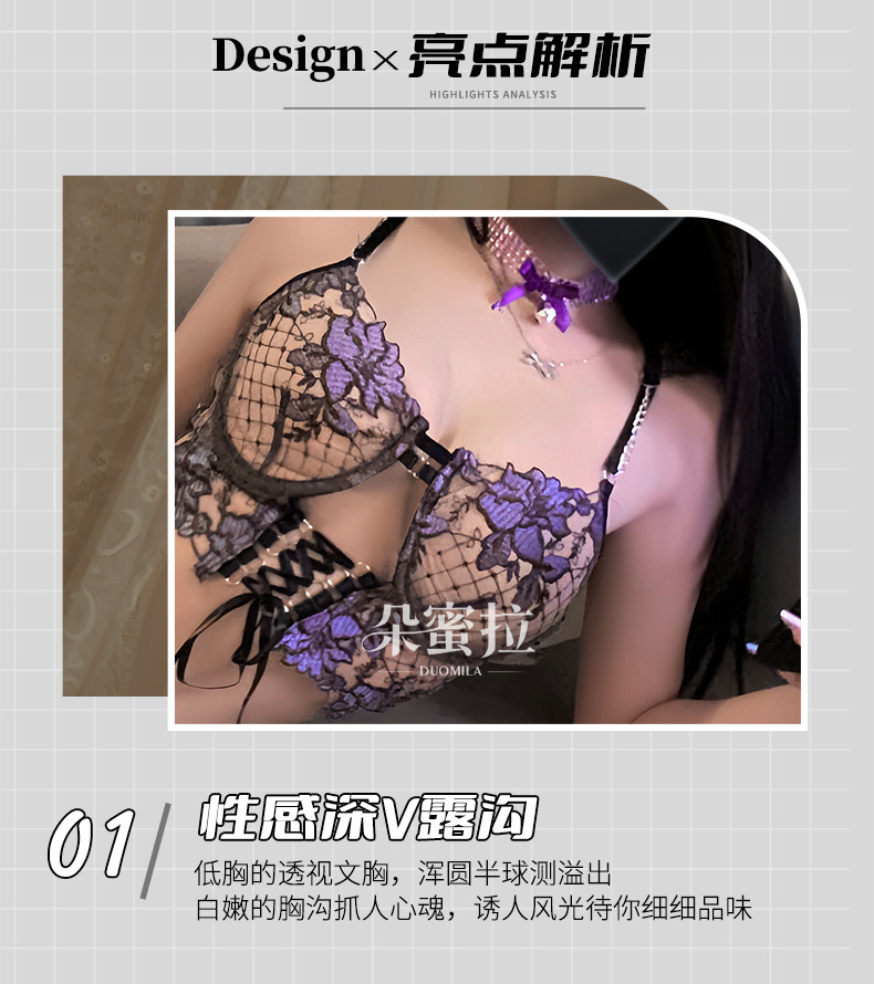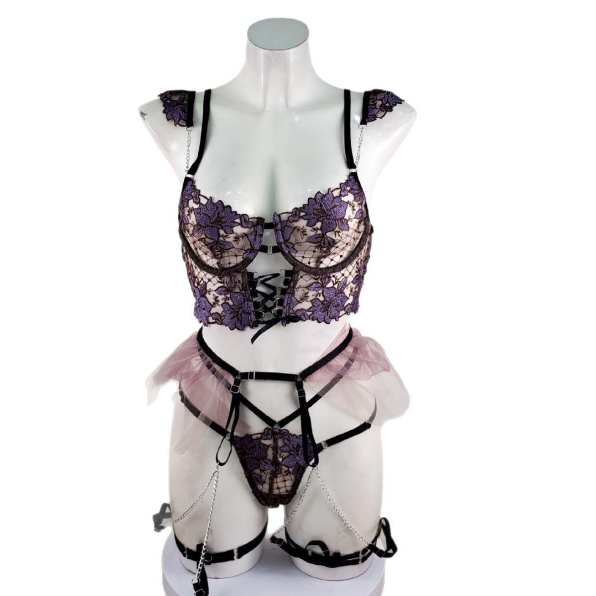 Dormila 섹시한 속옷 순수한 욕망 보라색 자수 슈트(와이어 및 가슴 패드 포함) 잠옷 유니폼 유혹
