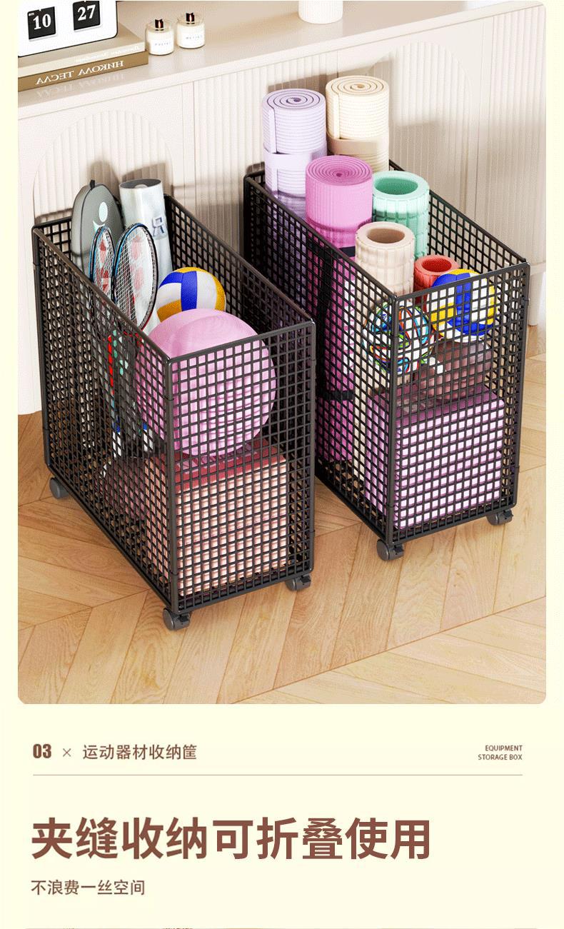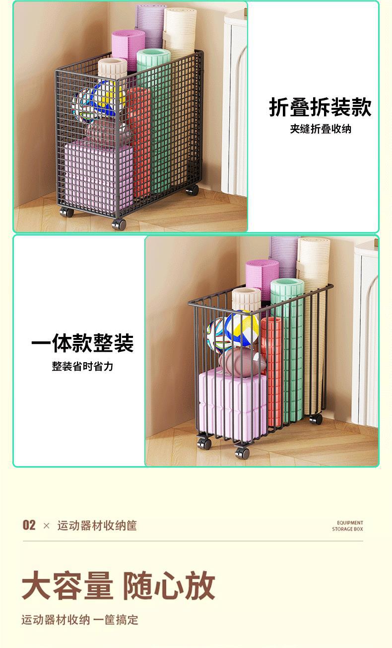 요가 매트 보관 튜브, 바퀴가 달린 피트니스 접이식 바구니, 좁은 가정용 장난감, 스포츠 용품 정리, 스포츠 장비 보관
