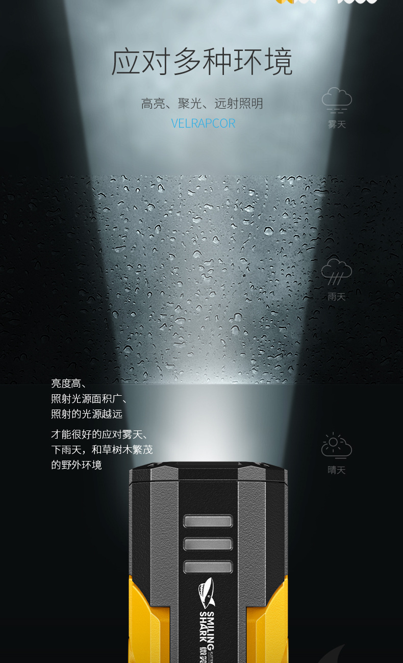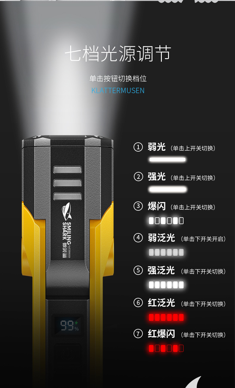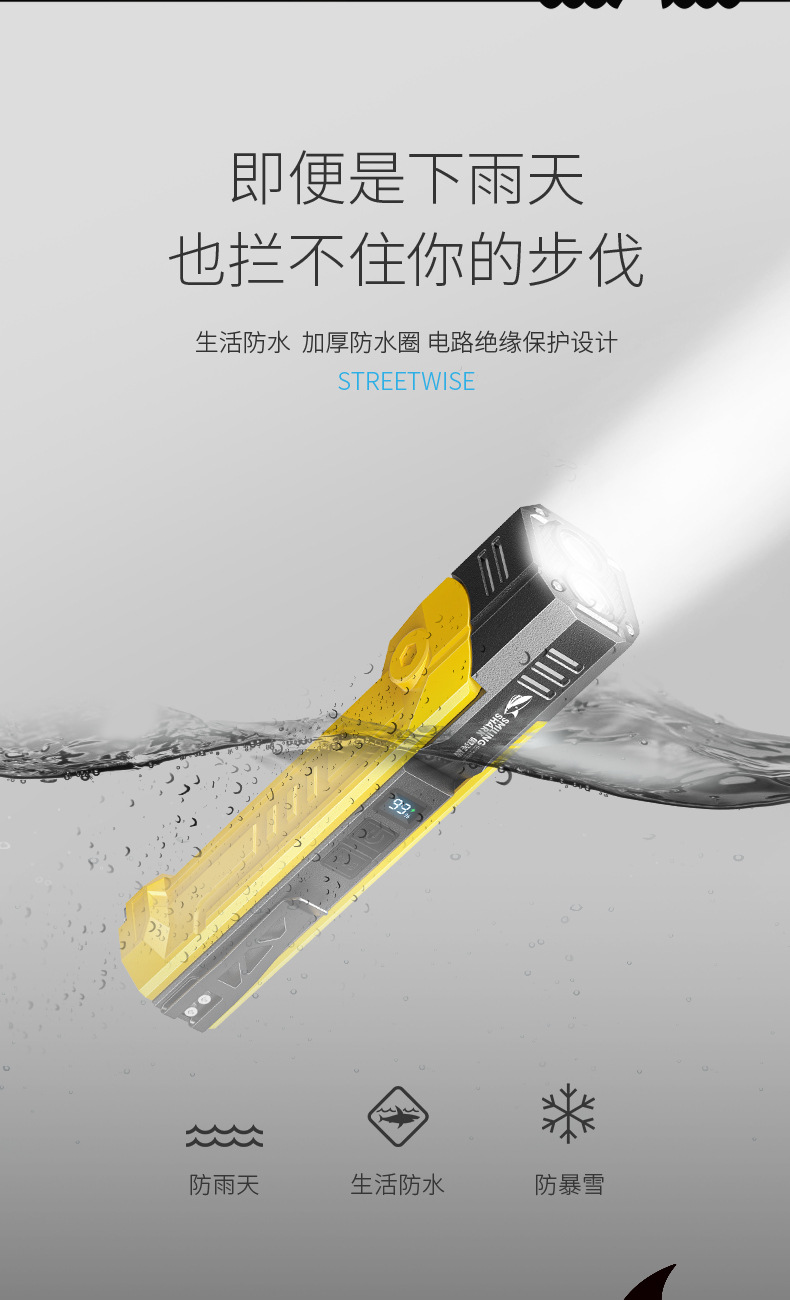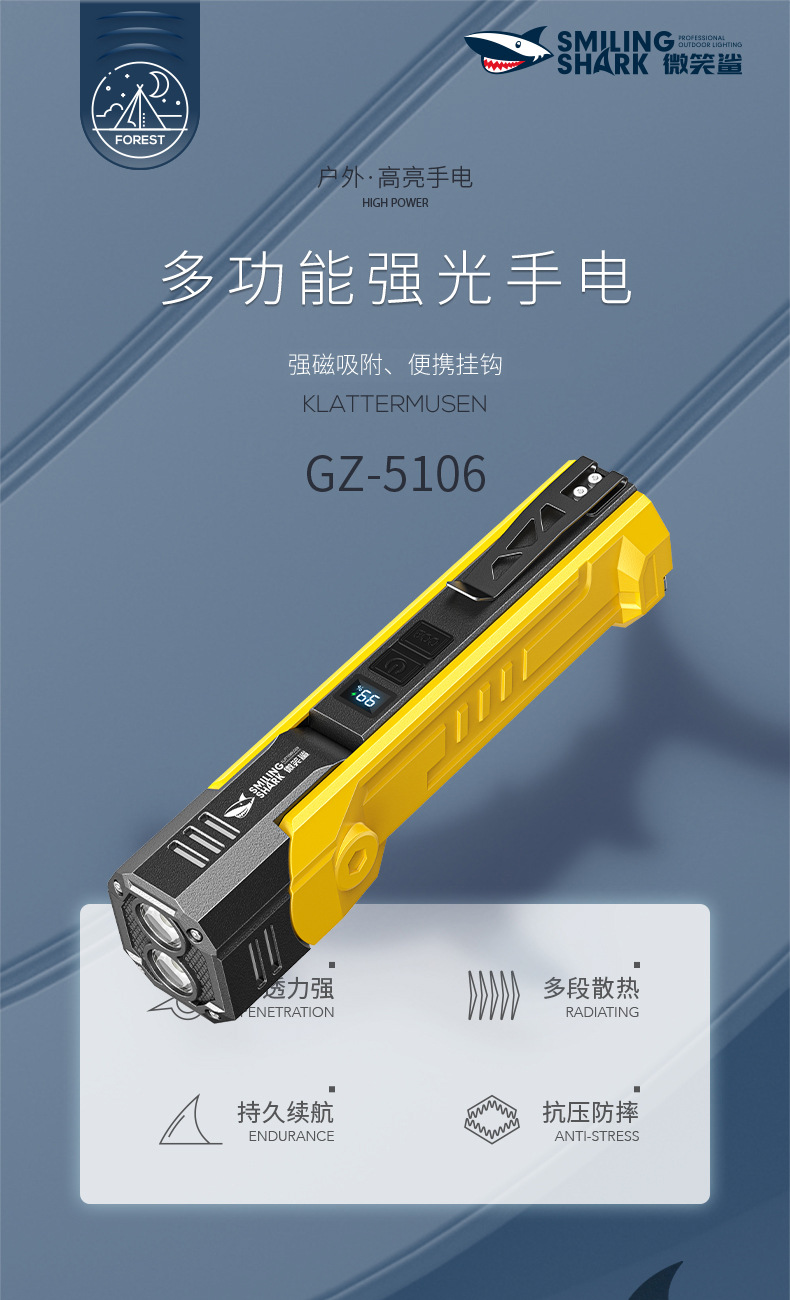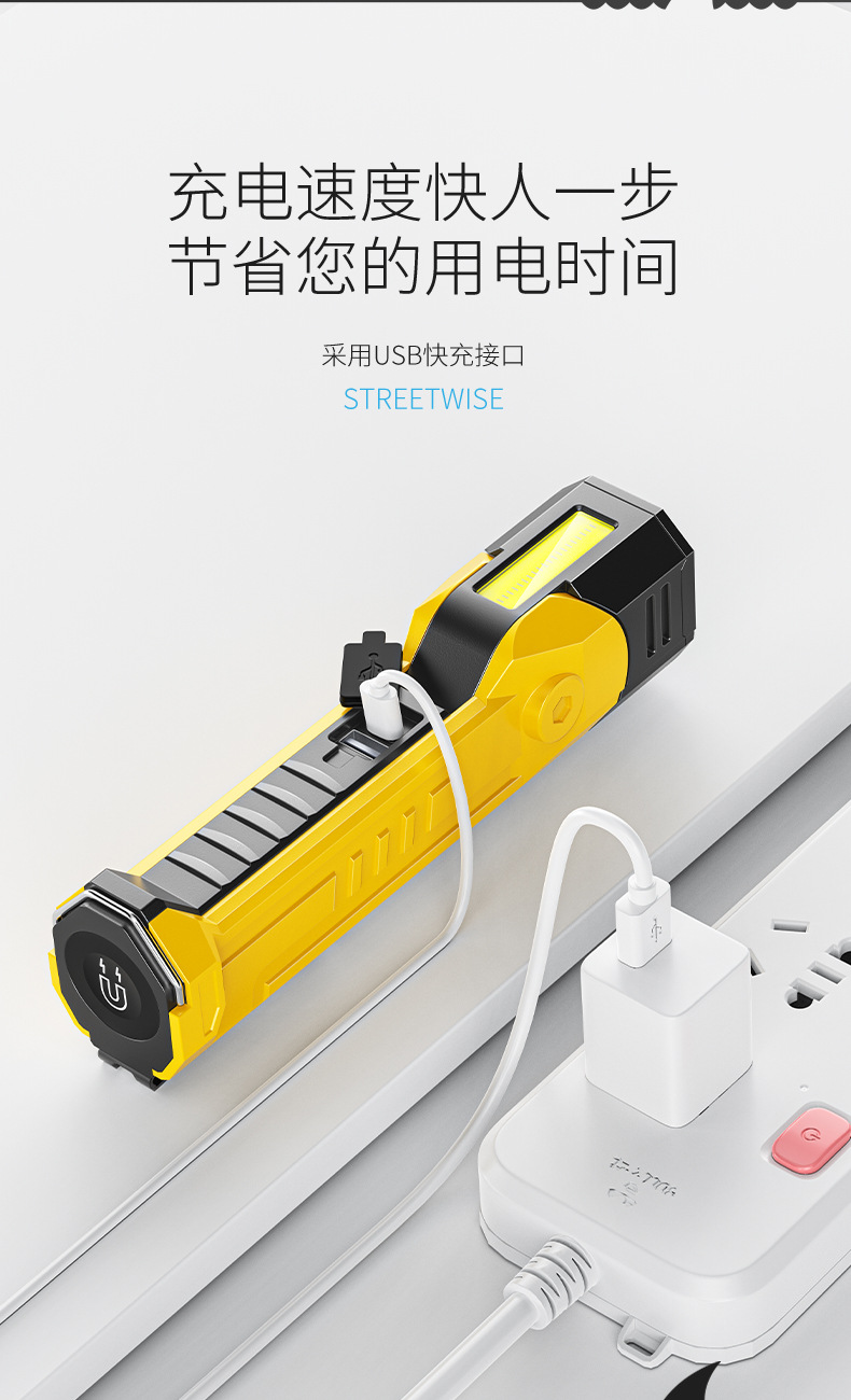 GZ-5106 다기능 빨간색과 흰색 이중 조명 손전등 [노란색, 내장 배터리 1500MAH]