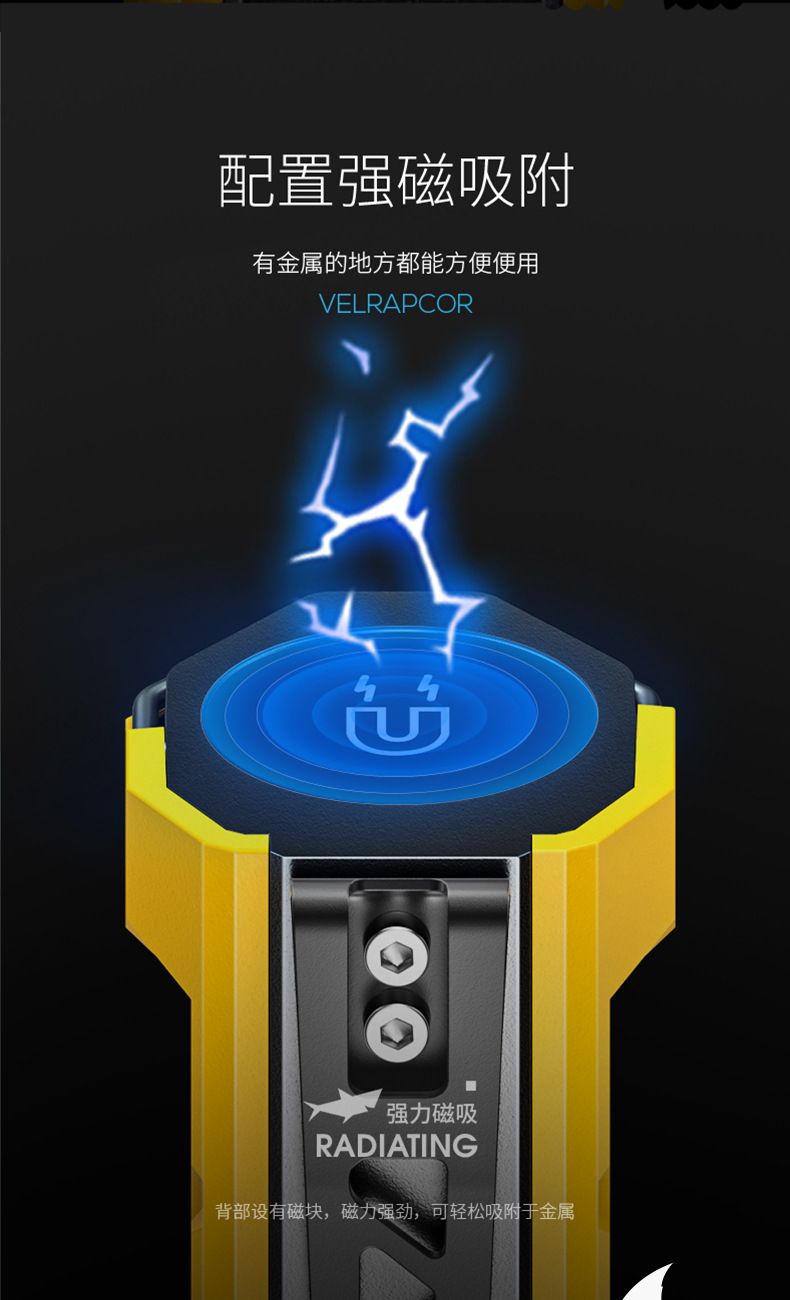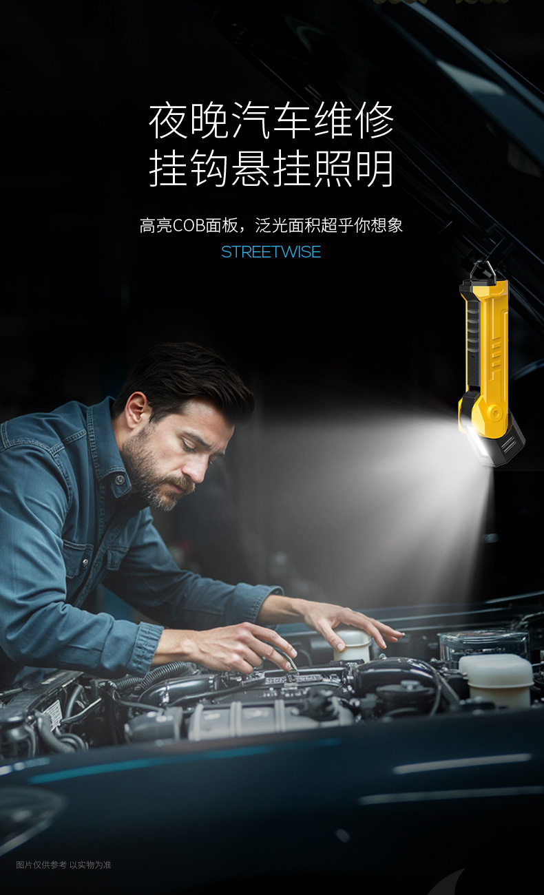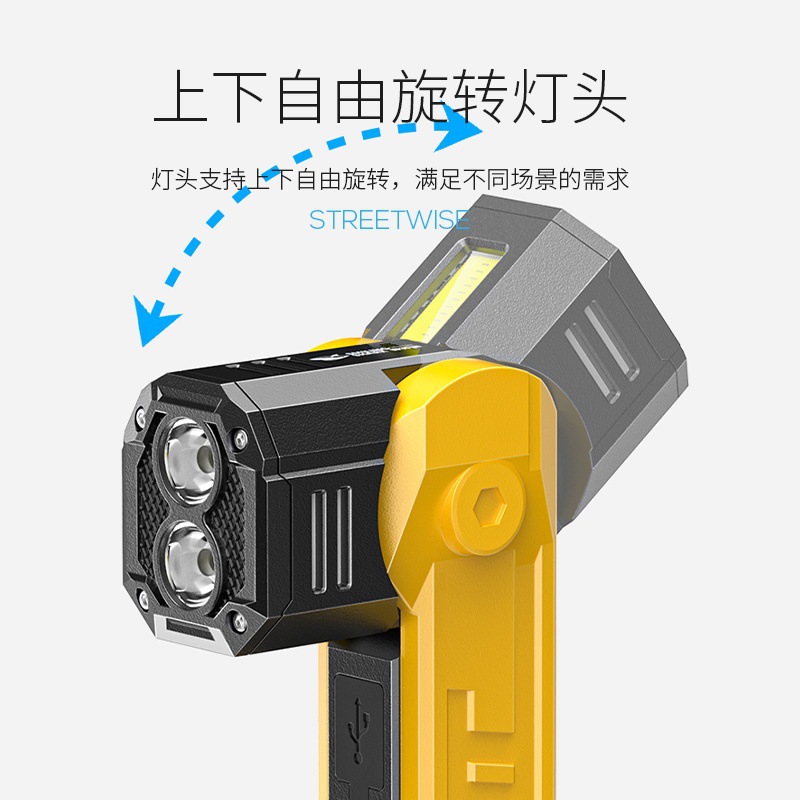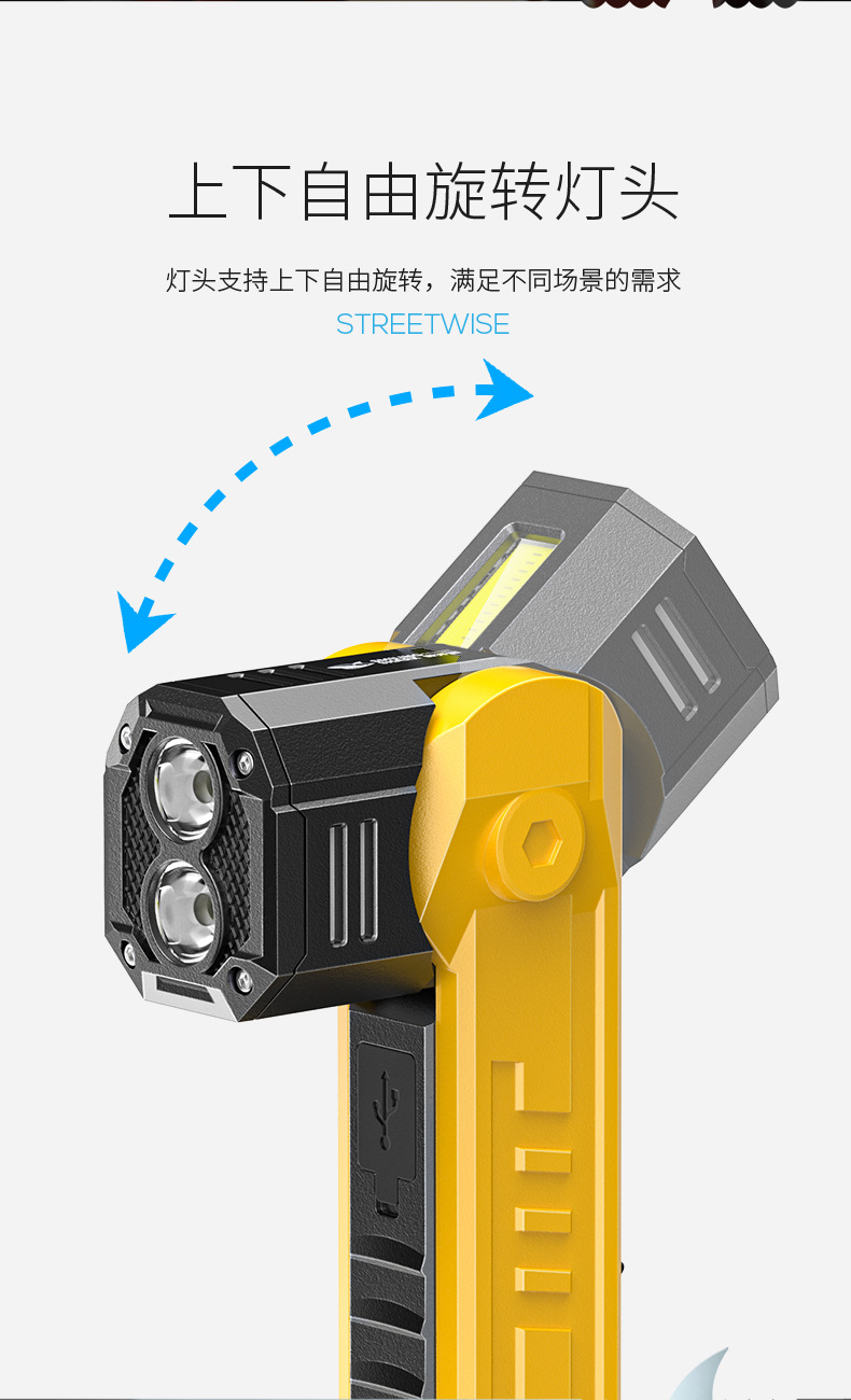 다기능 회전 램프 헤드, 디지털 디스플레이가 있는 자기 흡입 손전등, 유지 관리 조명, 붉은색 및 흰색 이중 조명 측면 조명, 후크 작업 조명