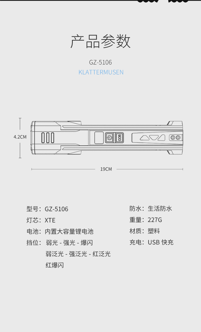 GZ-5109 다기능 적색 레이저 작업등 [내장 배터리 480MAH]