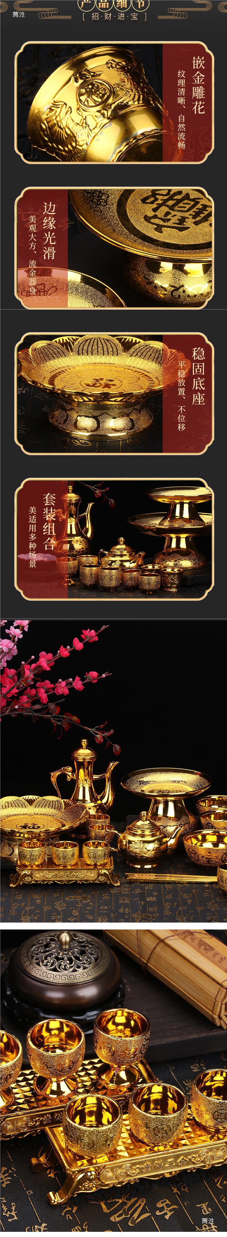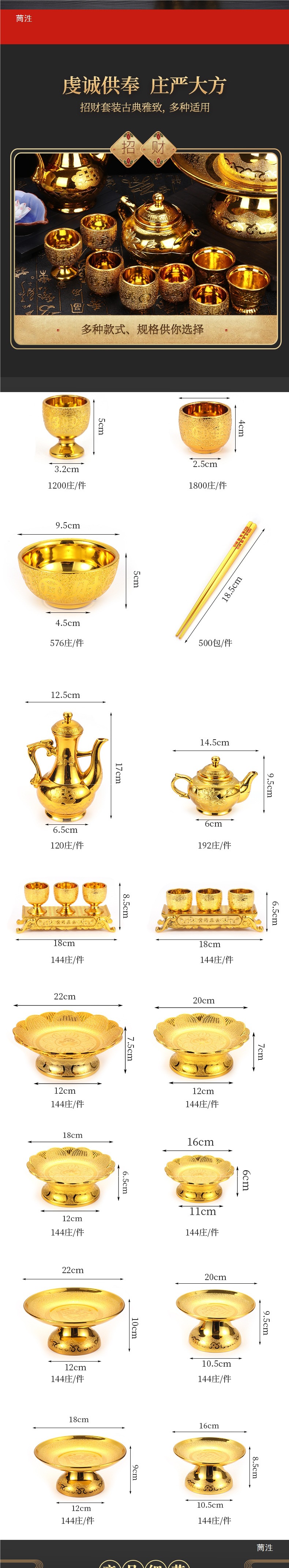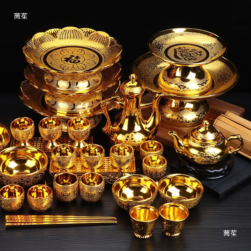 신을 예배하고 불상을 모시는 금사, 컵, 와인잔, 찻잔, 과일접시, 금그릇과 젓가락, 제물, 불교용품, 성수컵