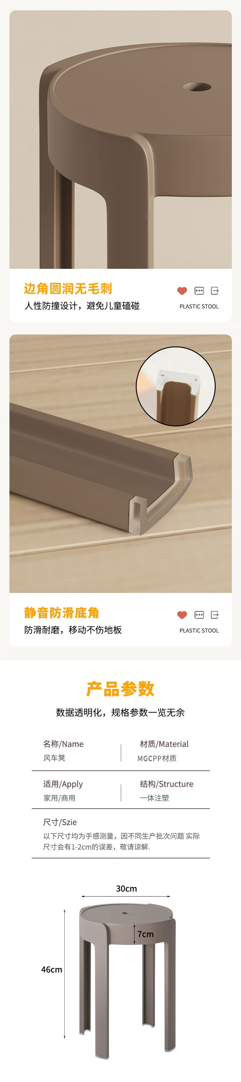 두꺼운 플라스틱 의자, 가정용, 매우 두꺼운, 현대적이고 단순하며 쌓을 수 있고 쌓을 수 있는, 편안한 의자, 높은 원형 의자, 벤치