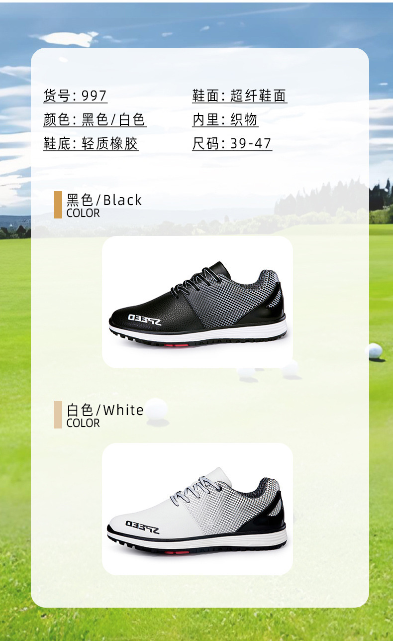 997 공장 직접 공급 골프 신발 캐주얼 남성 고정 스파이크 통기성 캐디 신발