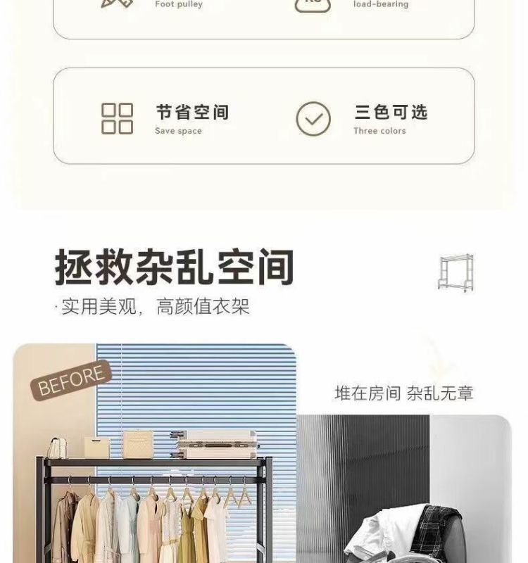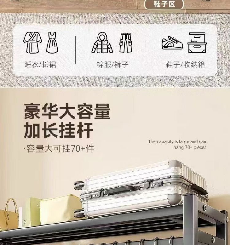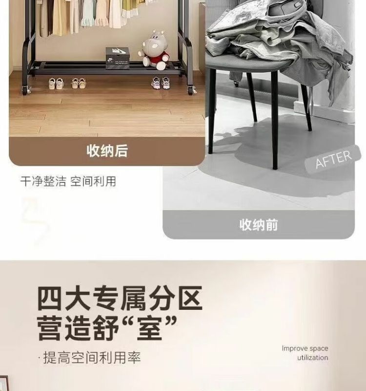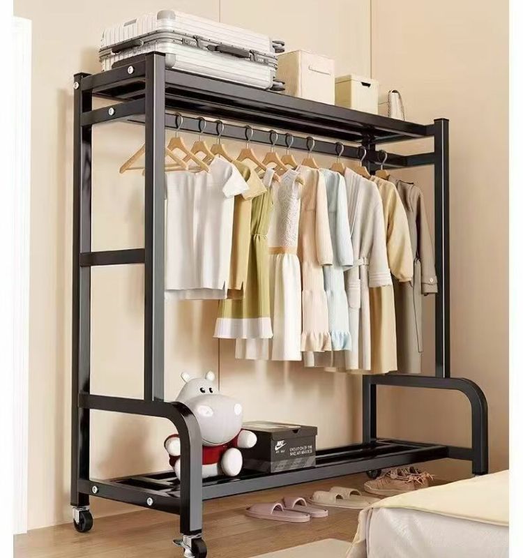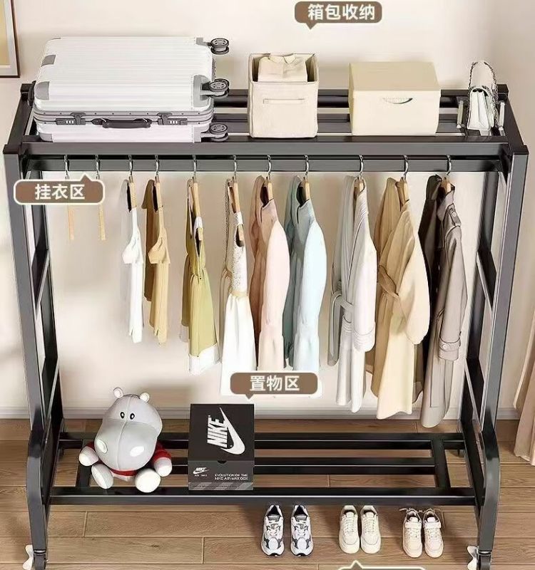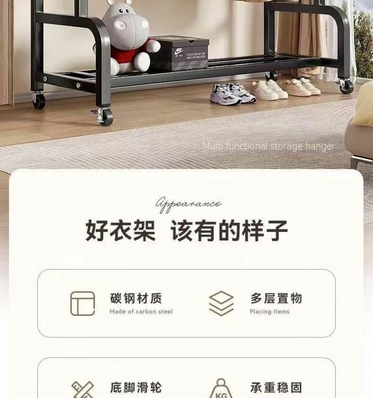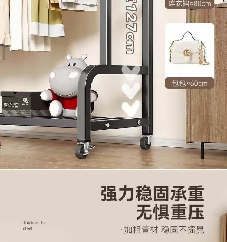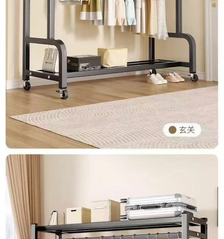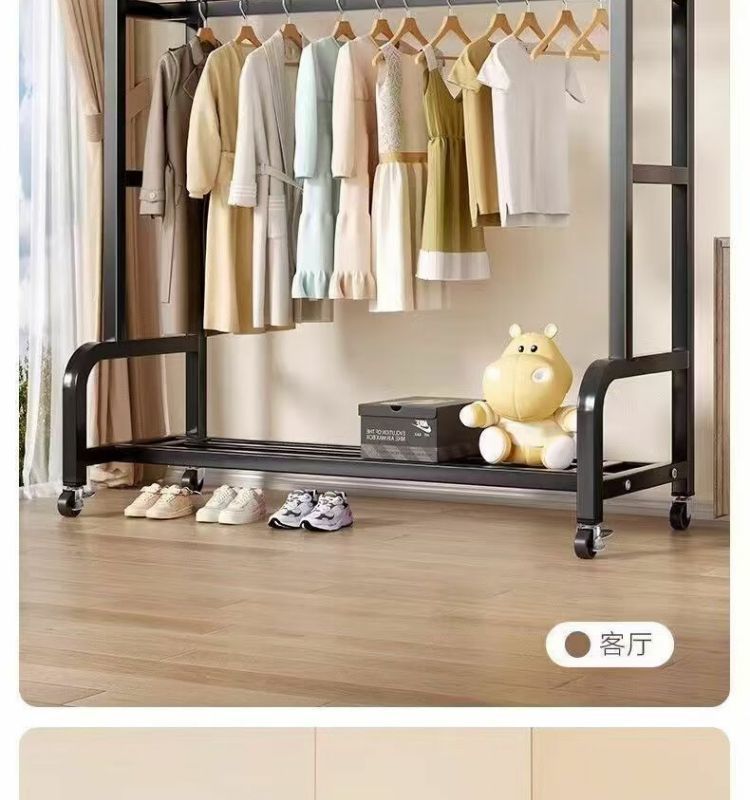 새로운 스타일의 옷걸이 바닥 스탠딩 수직 이동식 옷걸이 랙 두껍고 두꺼운 실내 옷 건조 랙