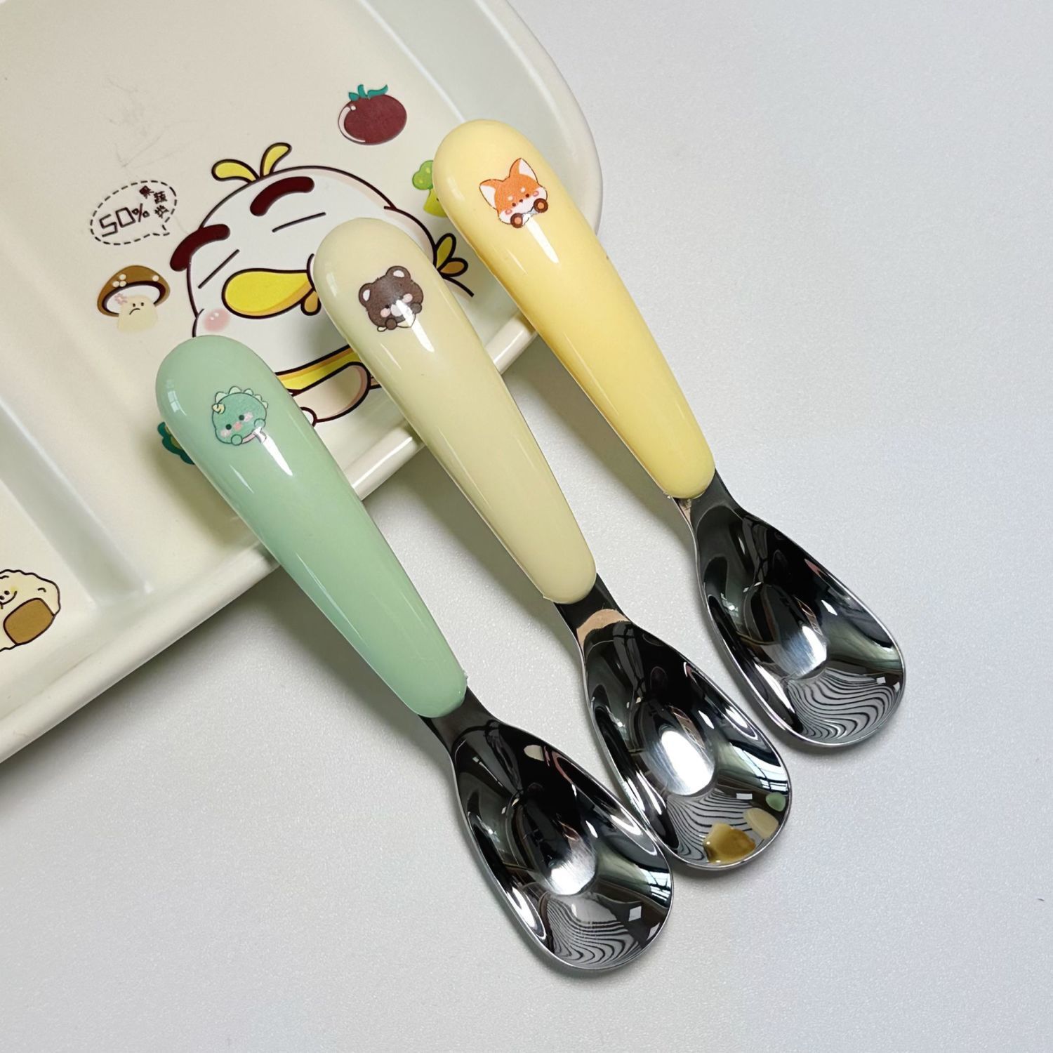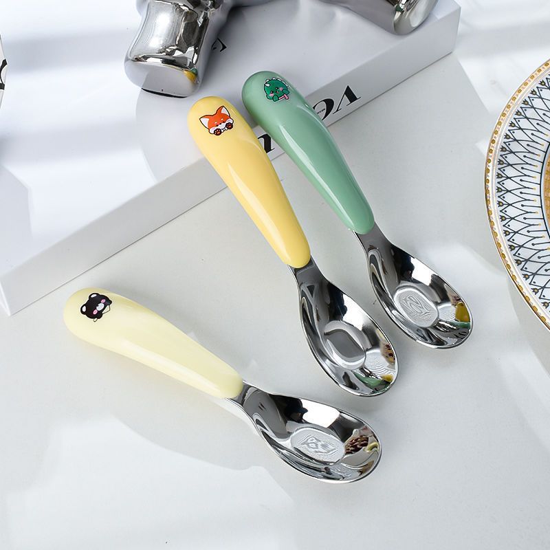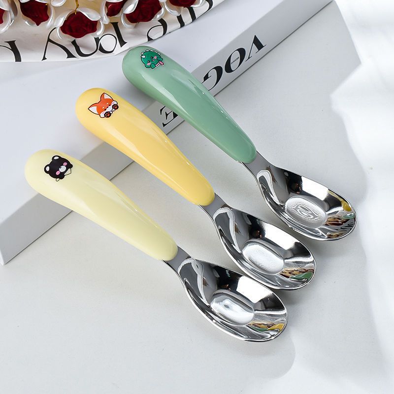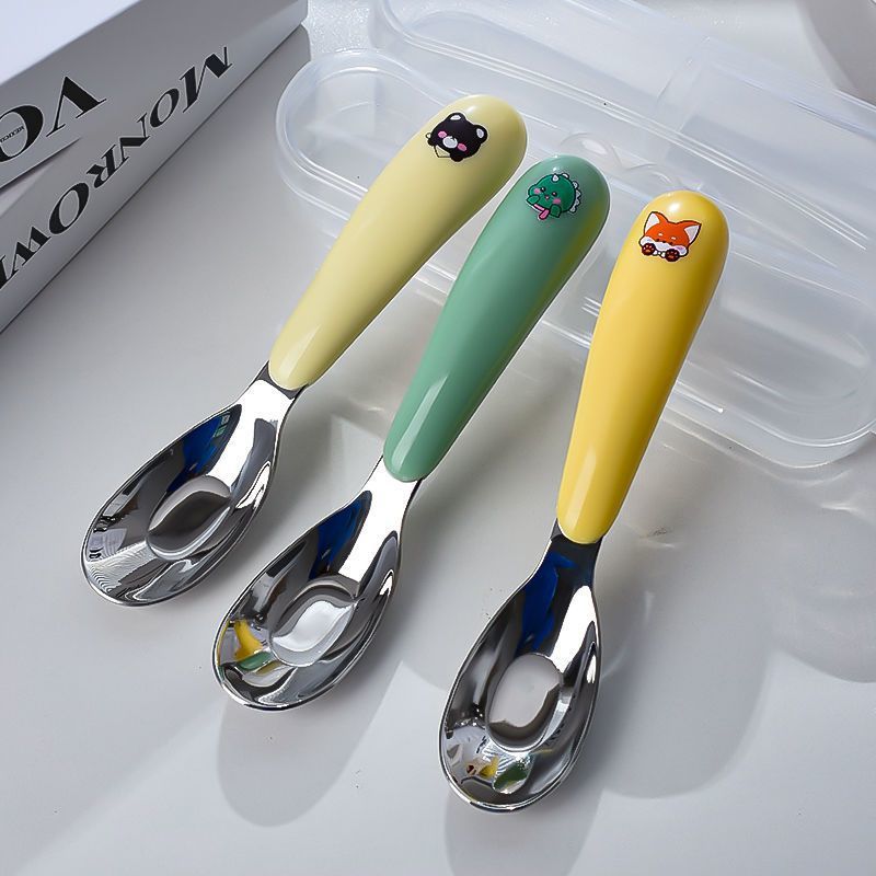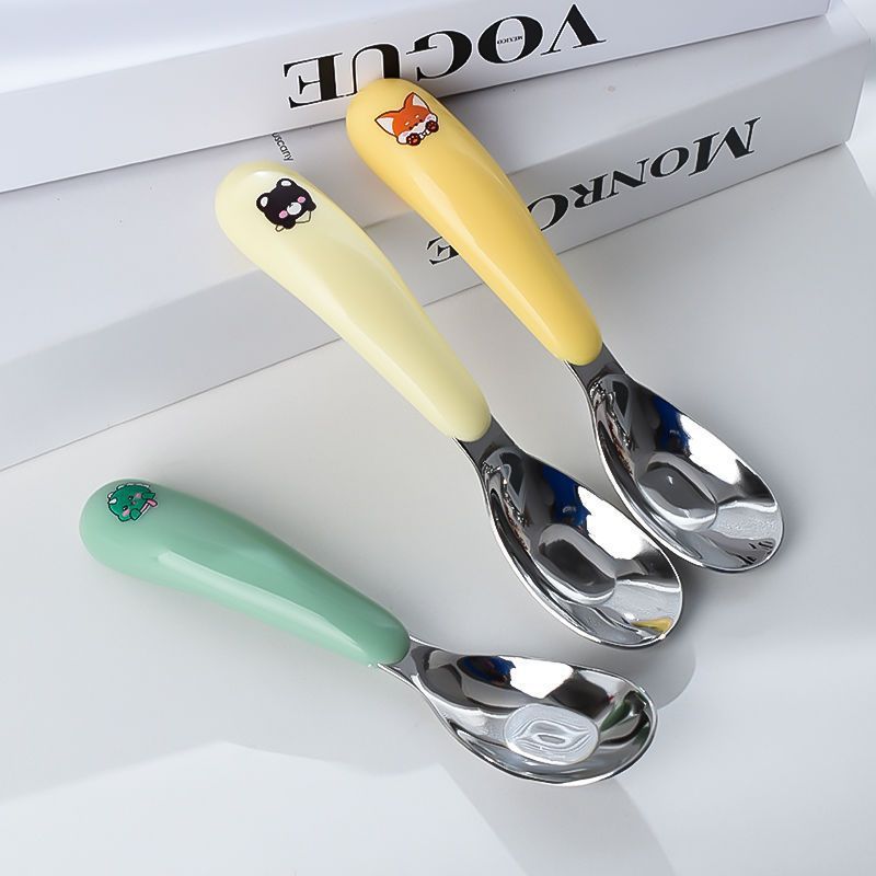 Yuanbao 스푼 아기 316L 스테인레스 스틸 학습 먹는 훈련 독립적인 먹는 스푼 아기 먹이 특수 어린이 식기