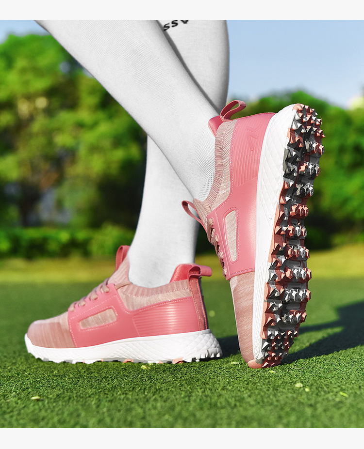 새로운 크로스보더 플라이 니트 골프화, 여성용 통기성 스파이크리스 골프 트레이닝화, 발수 운동화
