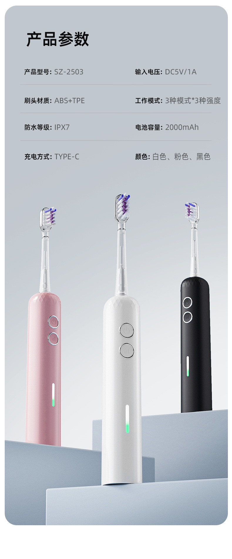 2503 진동전동칫솔 [블랙] 칫솔모 3개