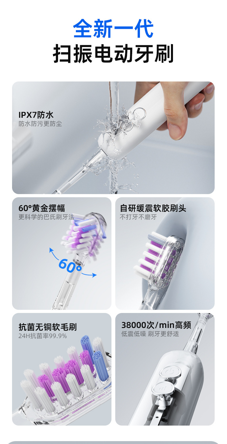 국경 간 새로운 스윕 진동 전동 칫솔 방수 가정용 치아 클리너 60도 스윕 진동 전동 칫솔 성인 충전식 모델