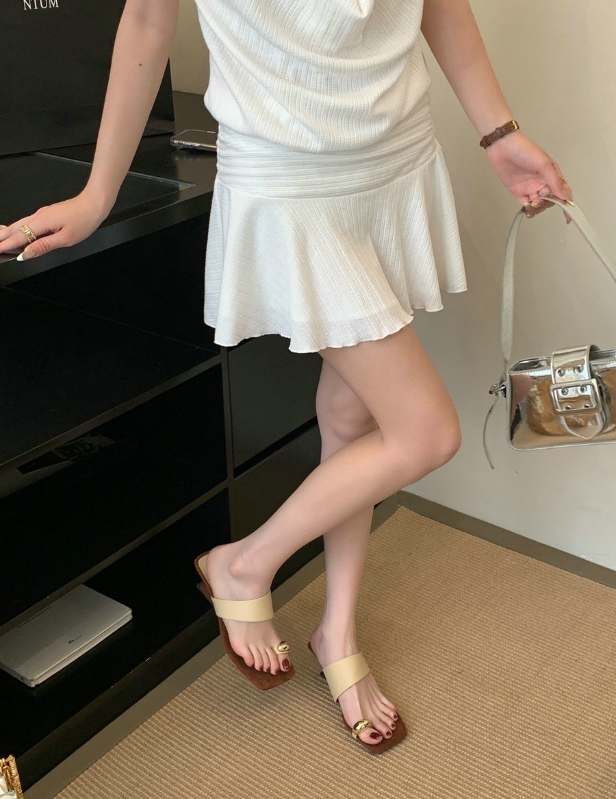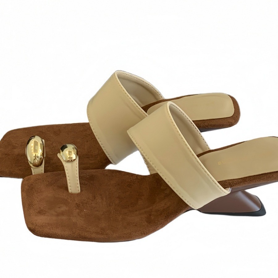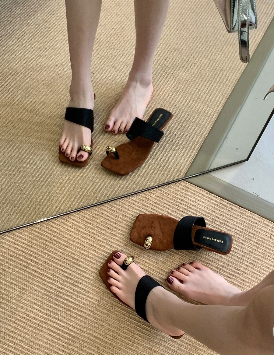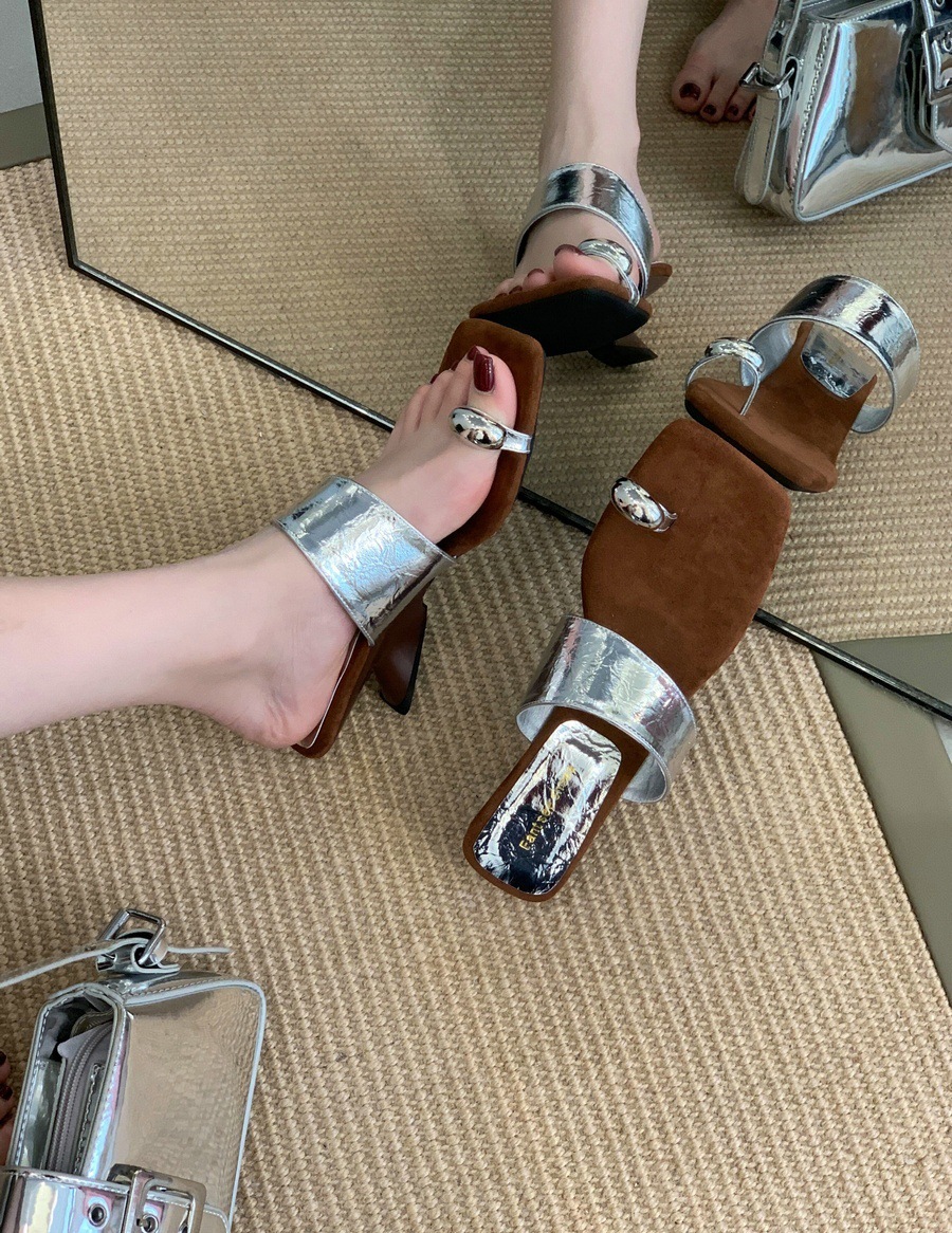 광저우 잉잉 2026 신상 프렌치 레트로 스타일 사각코 굵은 굽 토오픈 샌들 여성 여름용 메탈 원라인 버클