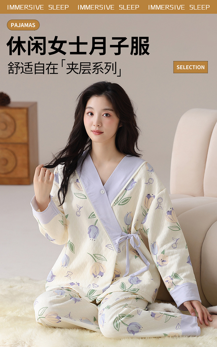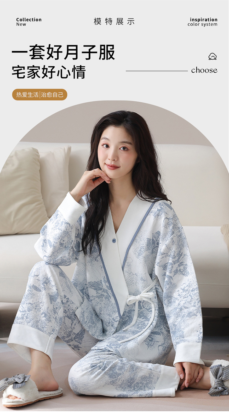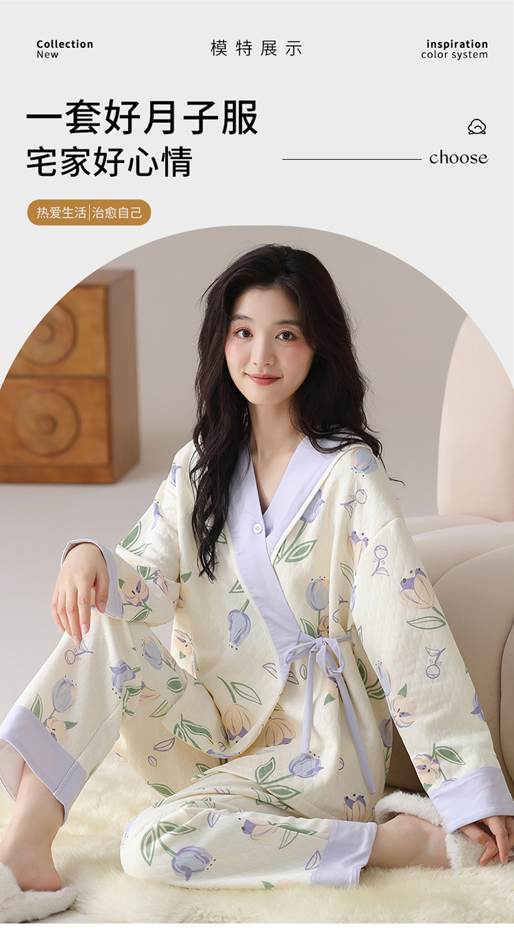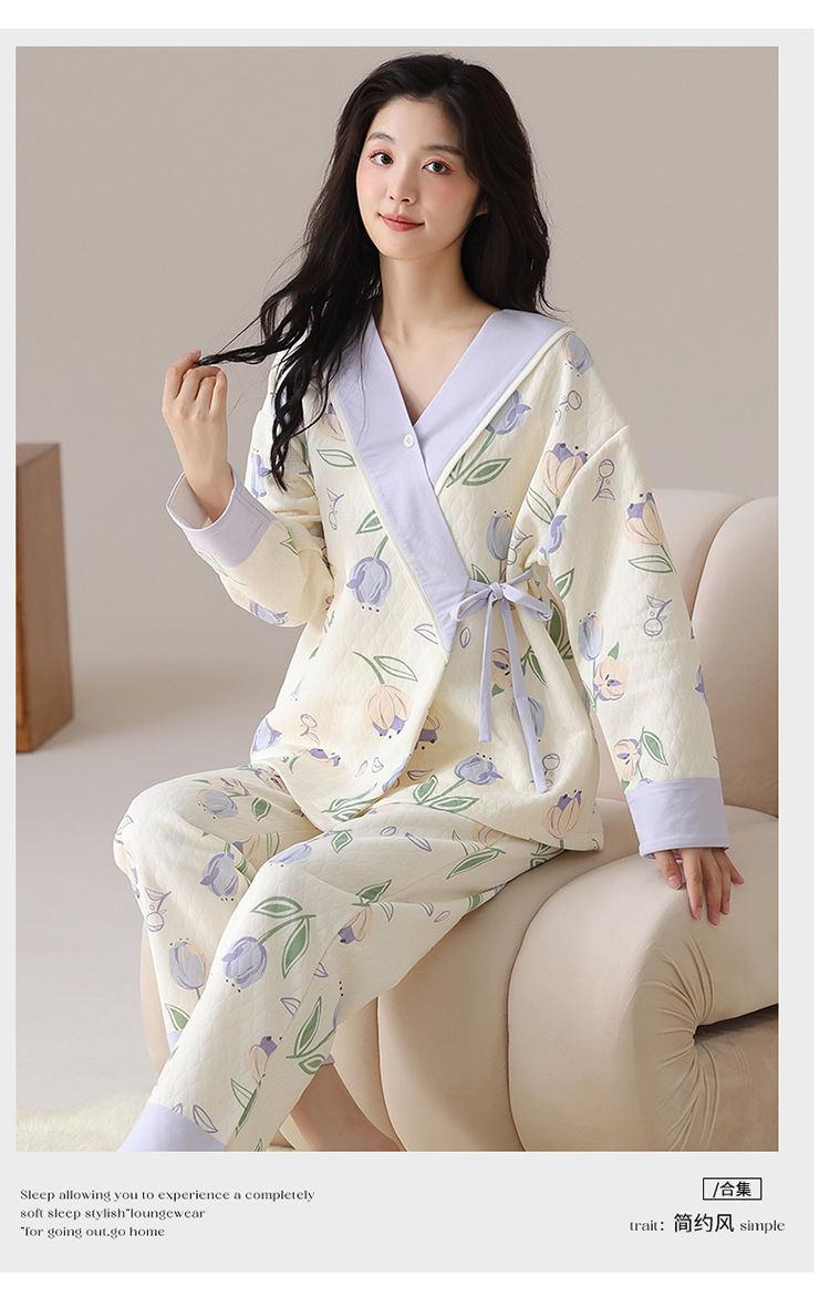 산후복, 임산부 잠옷, 산전 및 산후 수유, 가을 겨울 기모노, 겨울철 따뜻한 홈웨어 세트