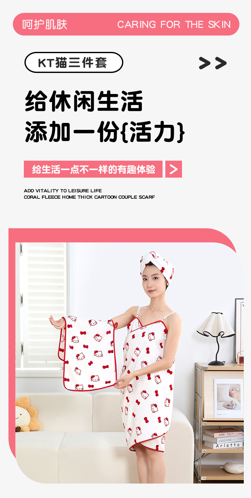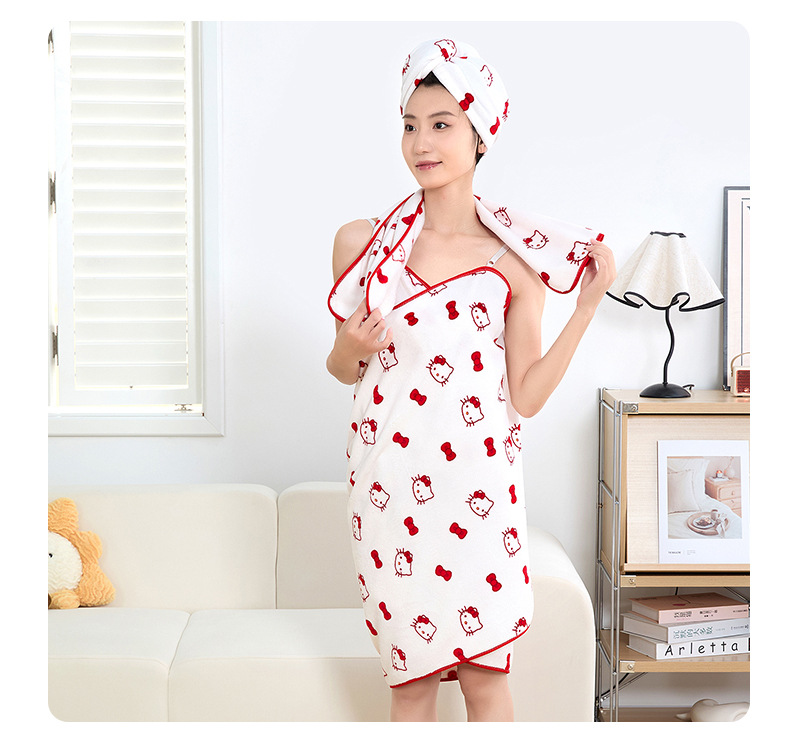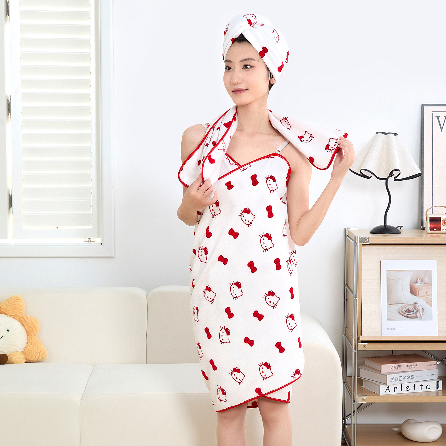 국경을 넘나드는 귀여운 KT 고양이 목욕 스커트 인터넷 연예인 긴 흡수성 속건성 보푸라기가 없는 두꺼운 목욕 타월은 목욕 타월로 착용 가능