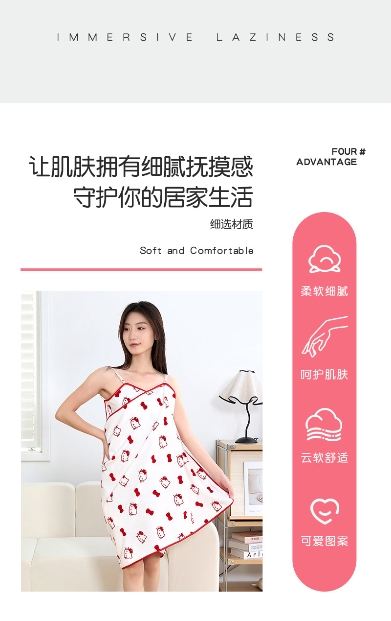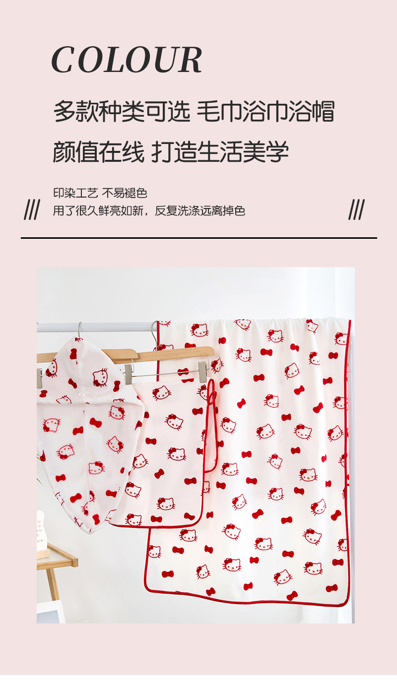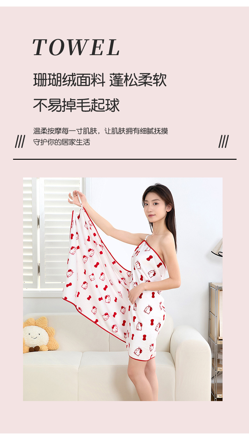 국경을 넘나드는 귀여운 KT 고양이 목욕 스커트 인터넷 연예인 긴 흡수성 속건성 보푸라기가 없는 두꺼운 목욕 타월은 목욕 타월로 착용 가능