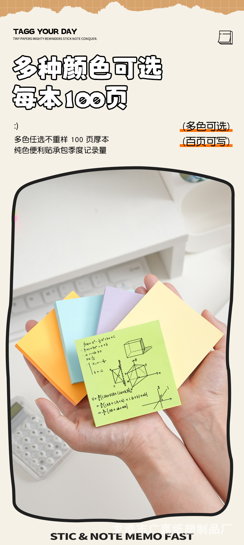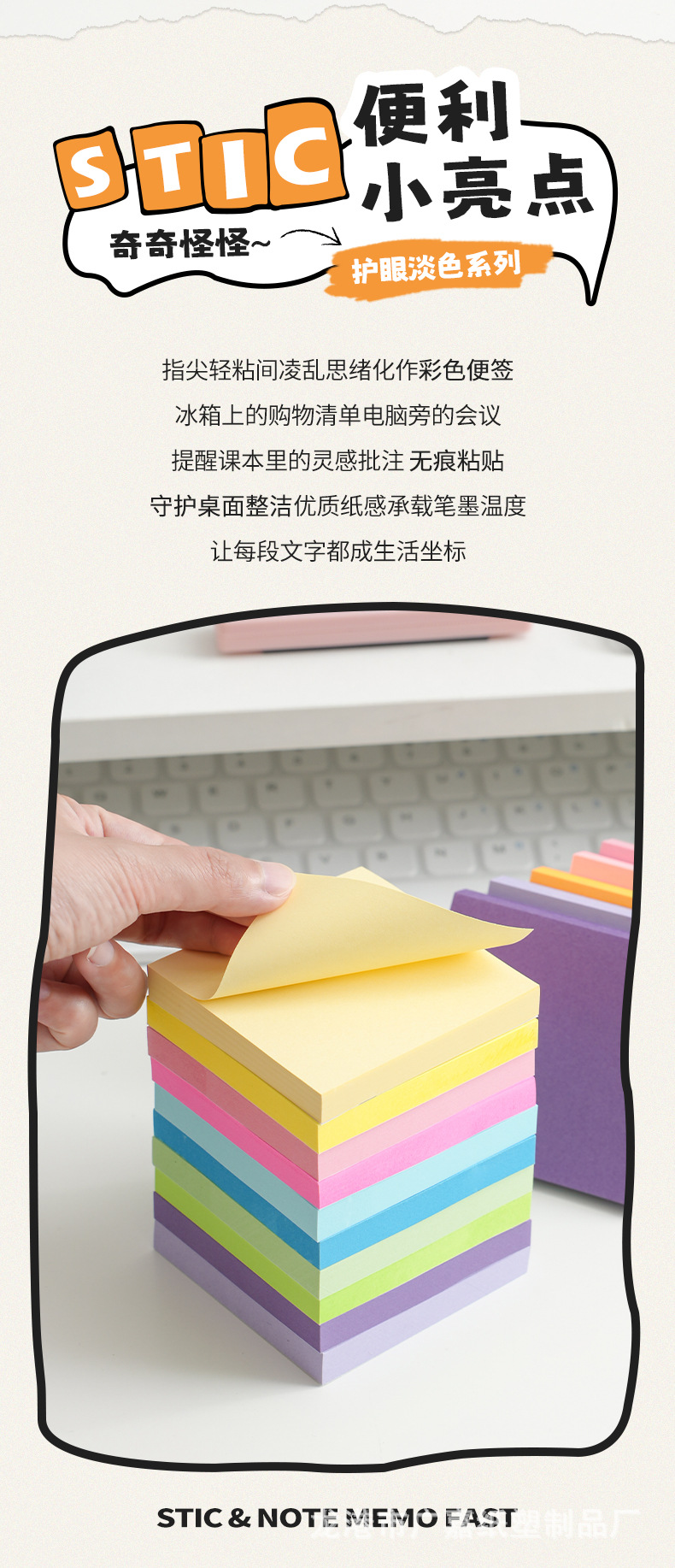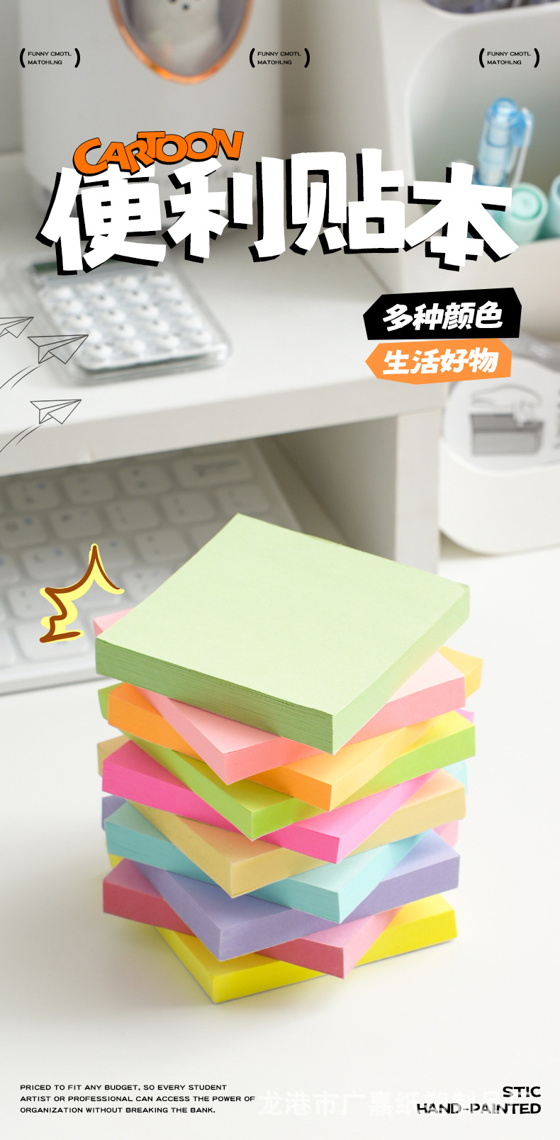 다채로운 스티커 메모, 귀엽고 창의적인 스티커 메모, 사무용 문구 스티커 메모, 찢을 수 있는 학생 메시지 메모 용지 사용자 정의