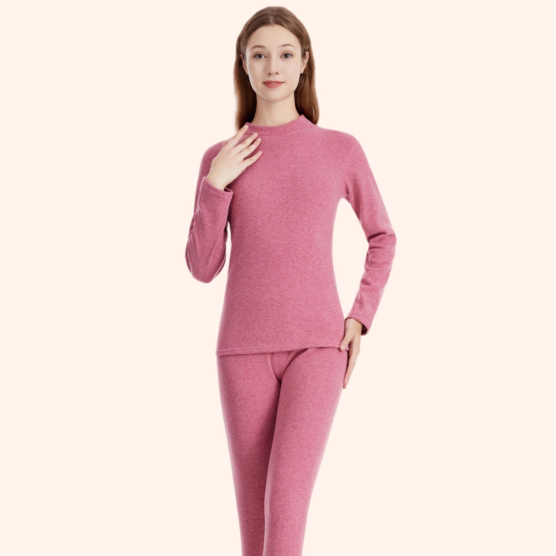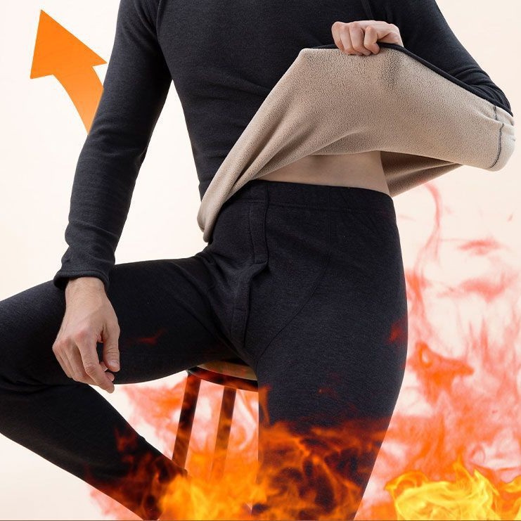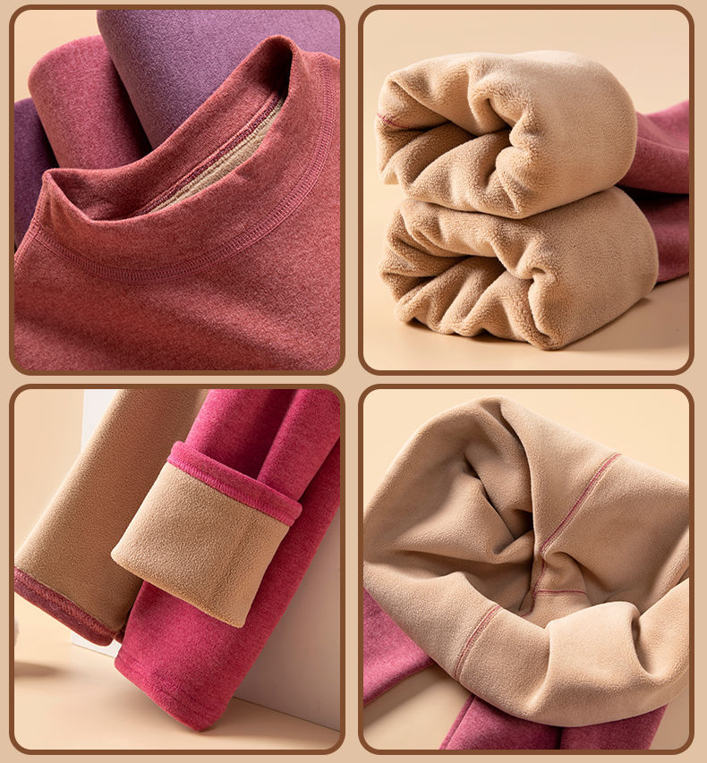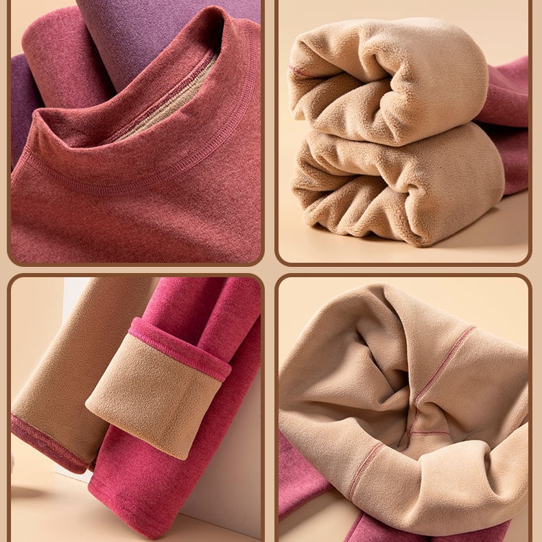 두꺼운 양털 남성용 및 여성용 보온 속옷 세트 가을 겨울 방풍 및 방한 중간 높이 칼라 독일 벨벳 가을 옷과 긴 바지