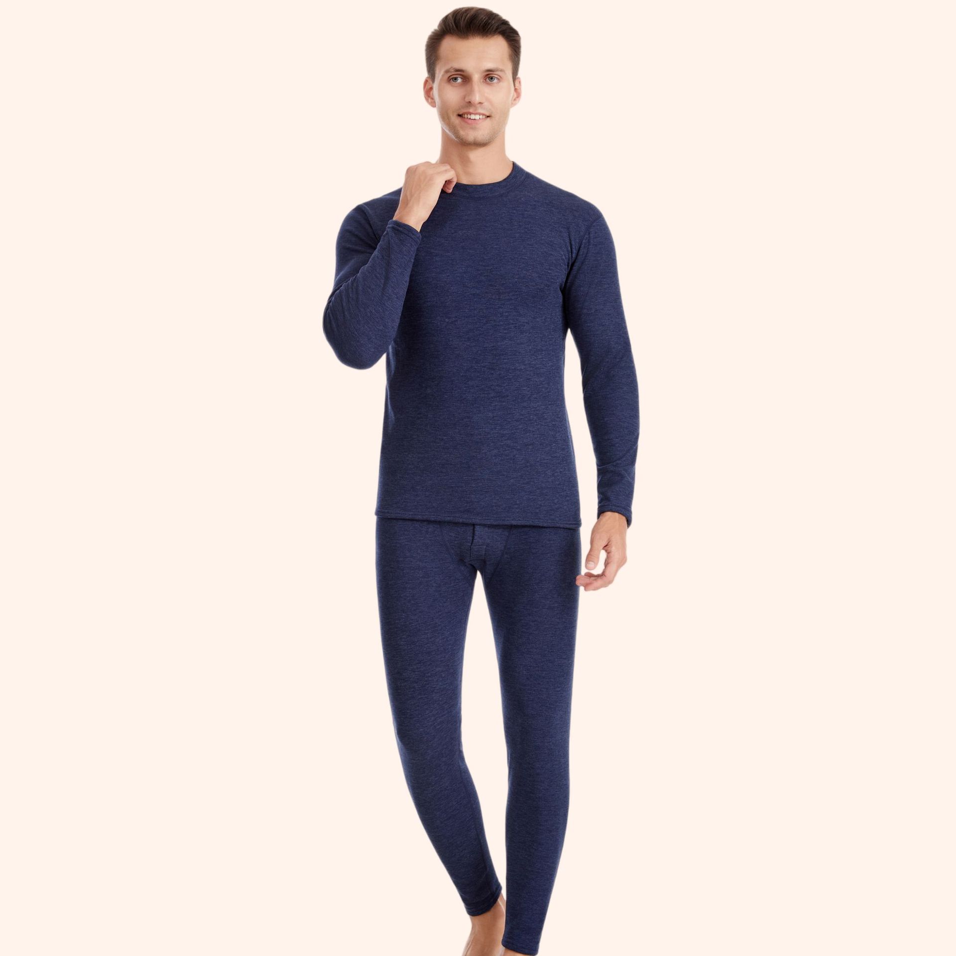 남성 정장 [네이비 블루 라운드 넥] 플러스 벨벳과 두꺼운