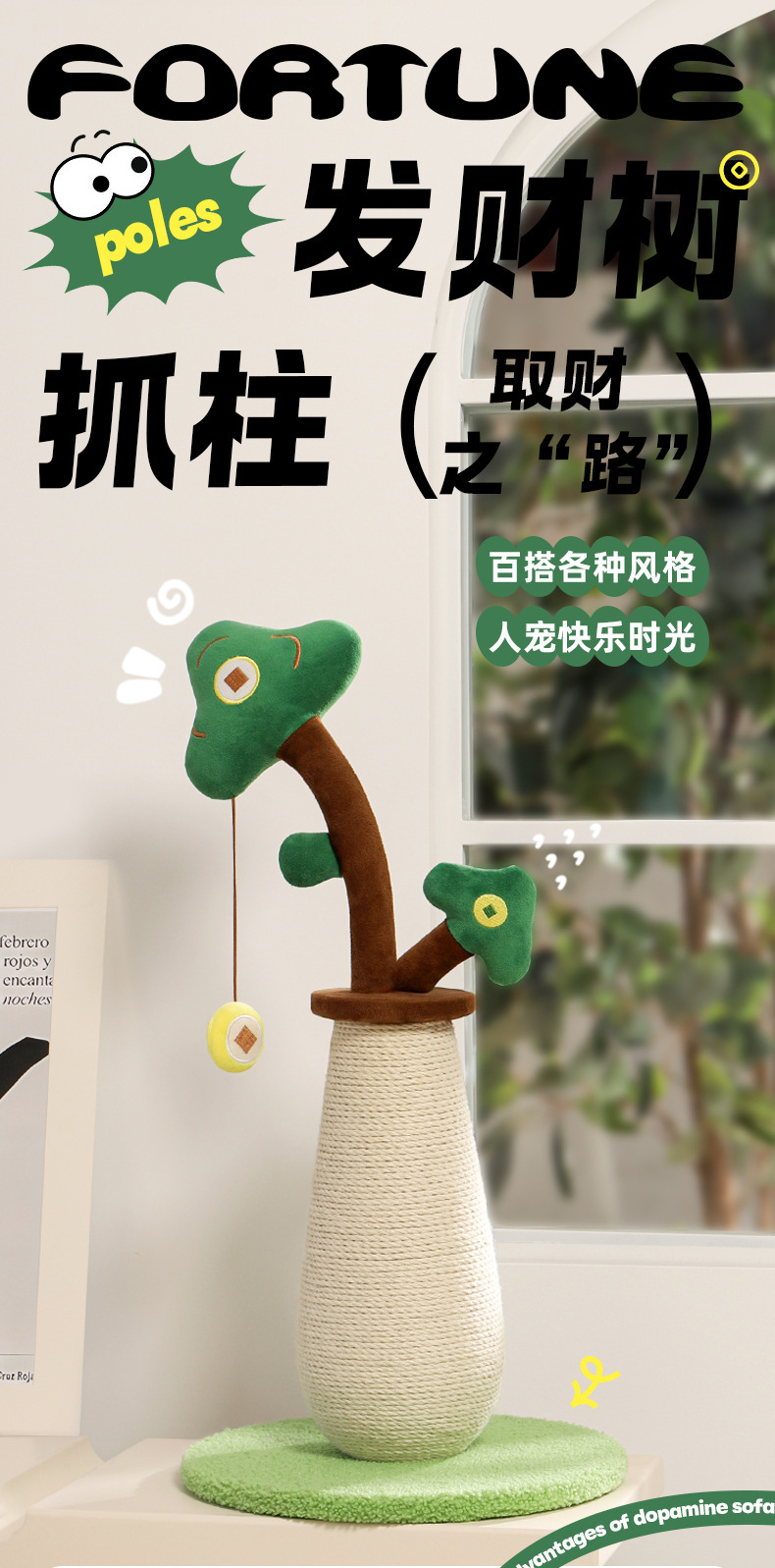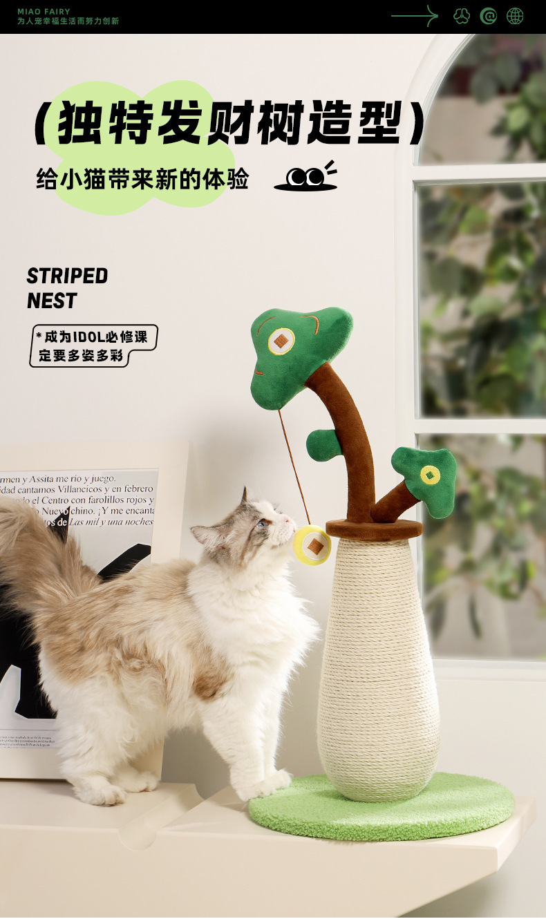 사마귀고무 고양이 스크래치 컬럼, 고양이 클라이밍 프레임, 내마모성, 긁힘 방지 및 부스러기 없는 수직 고양이 스크래치 보드, 행운의 나무 스크래치 컬럼, 고양이 장난감