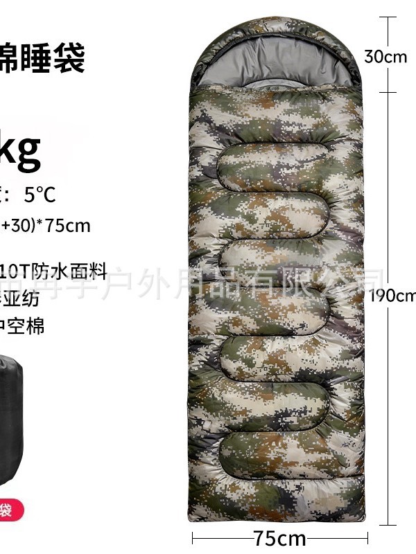 야외용 성인 침낭, 두꺼운 위장 침낭, 사계절용 휴식 및 캠핑용 위장 봉투형 다운 침낭