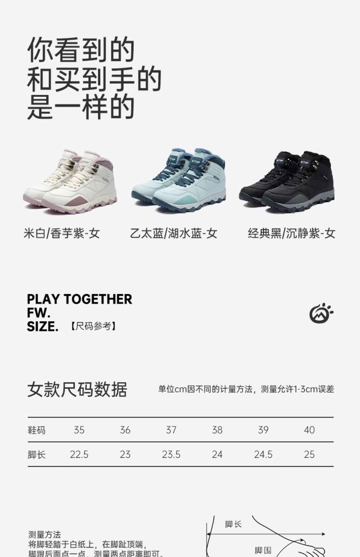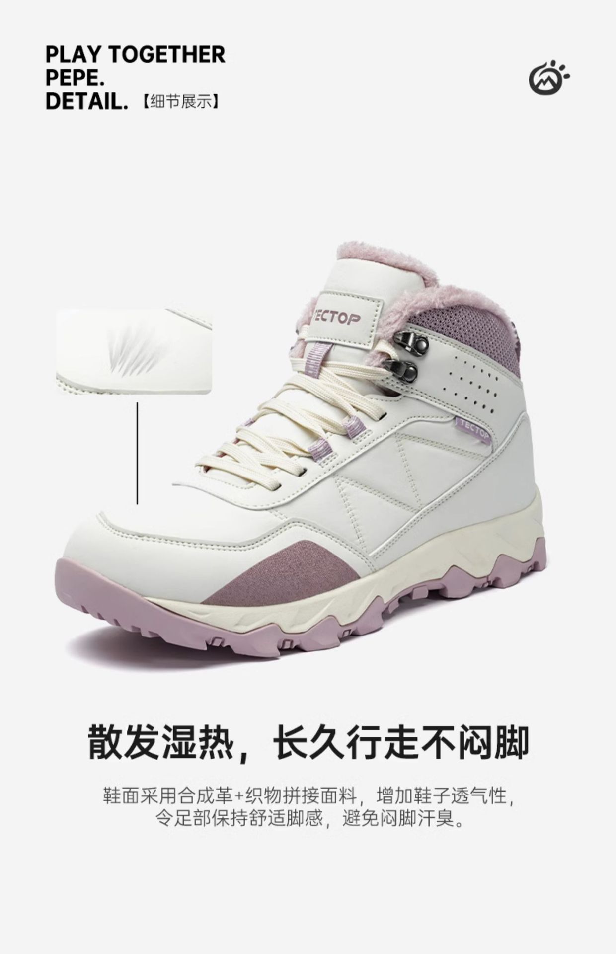 Tantuo 야외 전문 하이킹 신발 여성 겨울 새로운 따뜻한 미끄럼 방지 내마 모성 탄성 미드 탑 플러스 벨벳 하이킹 신발