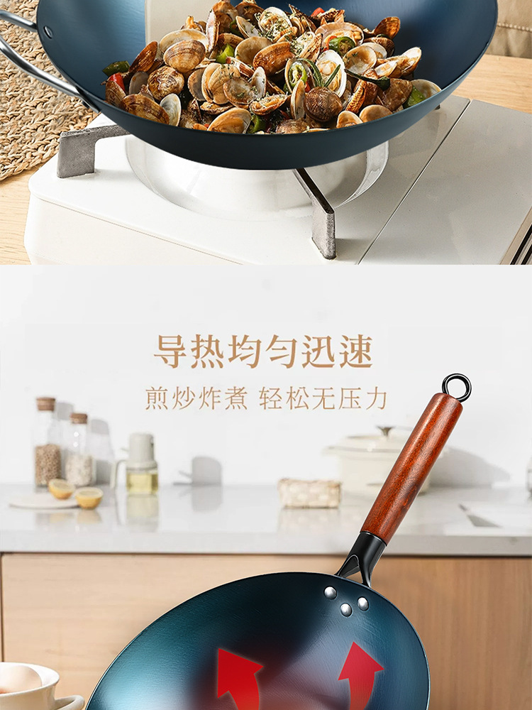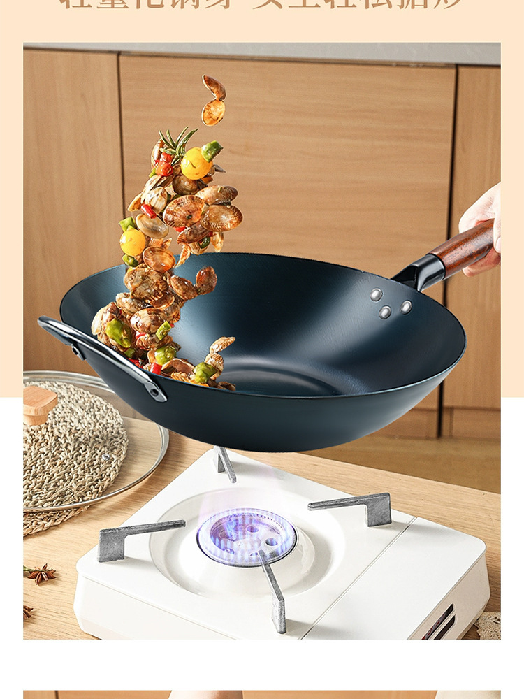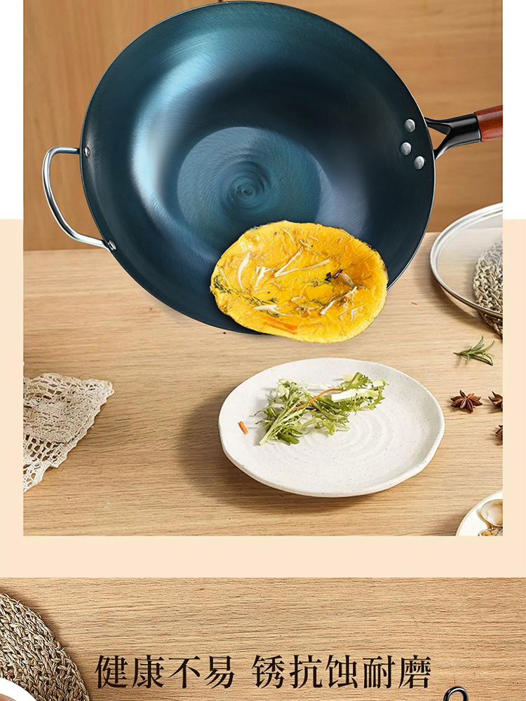 34cm 평바닥 웍 [수제냄비] + 스테인리스 투명뚜껑/주걱