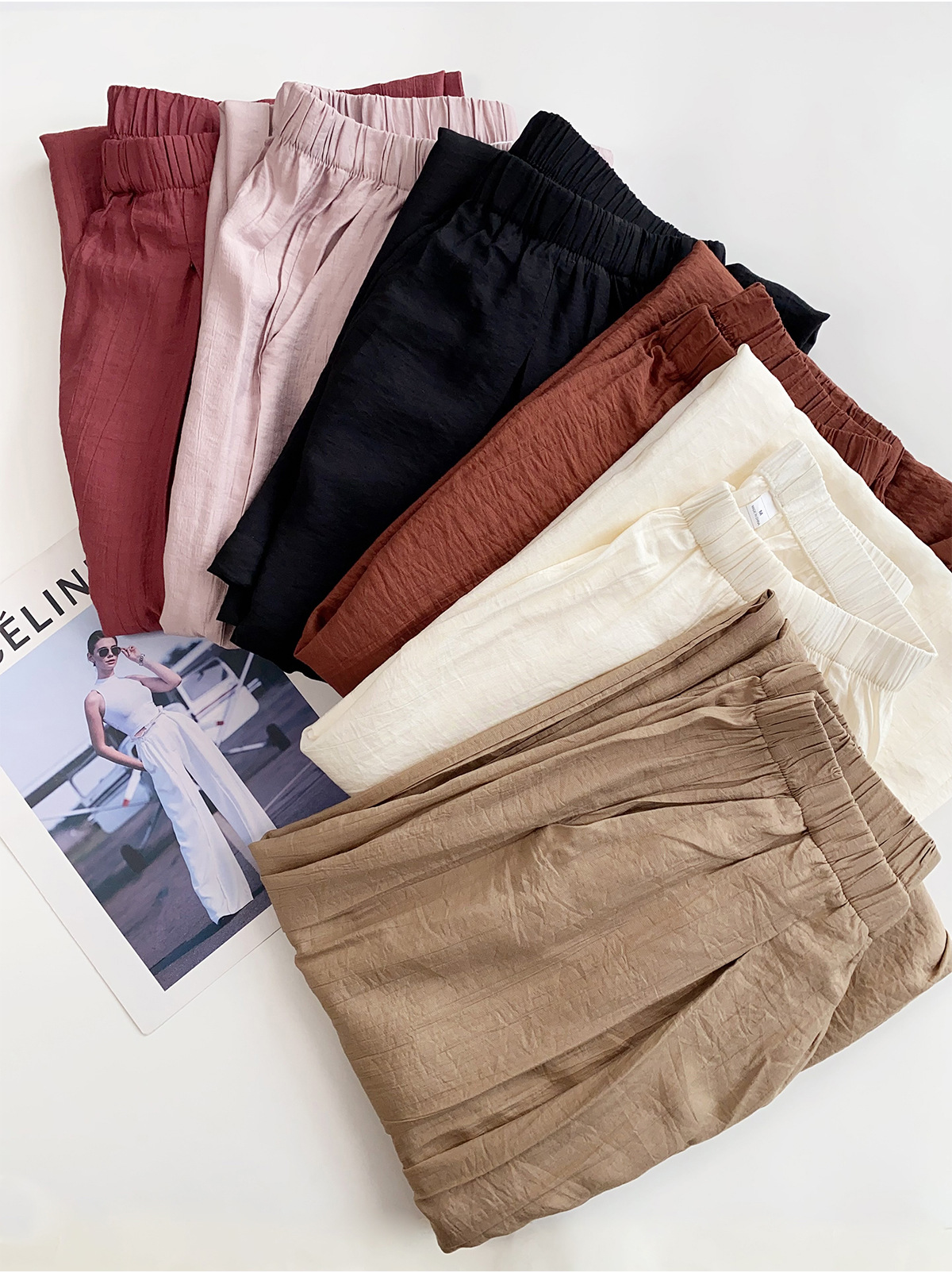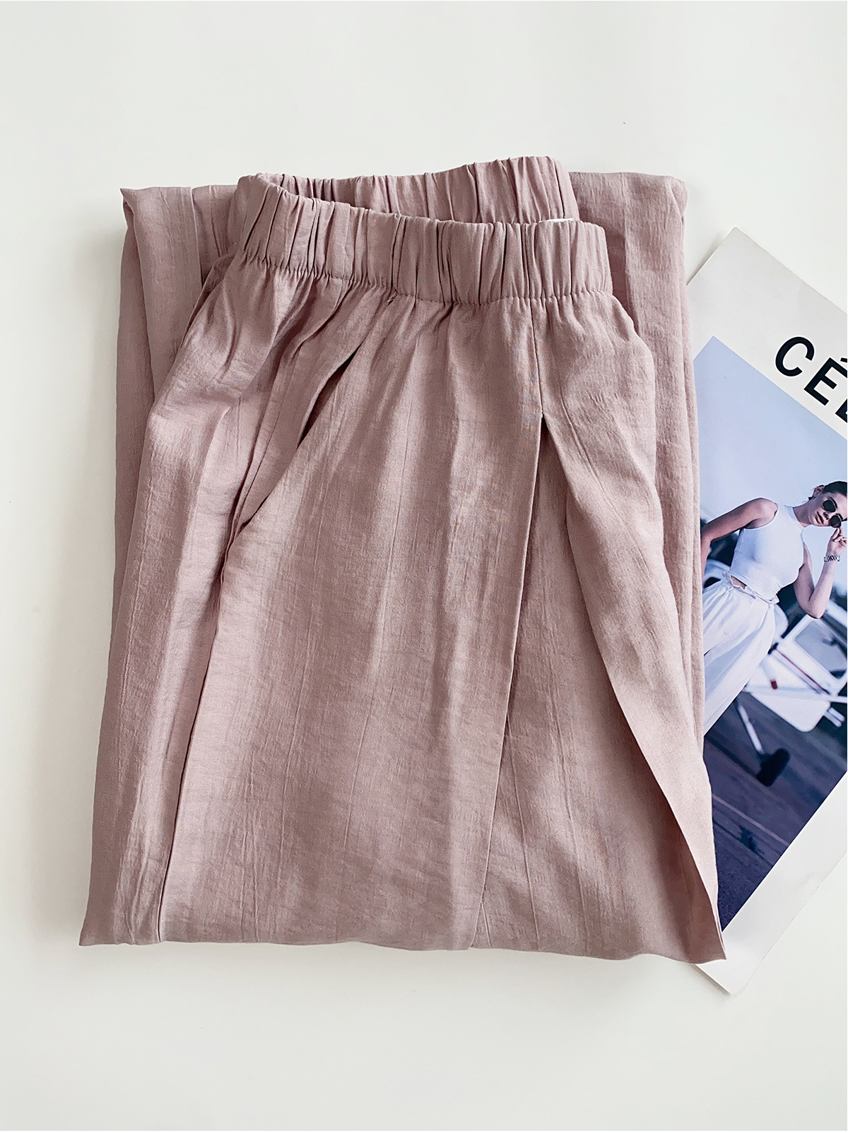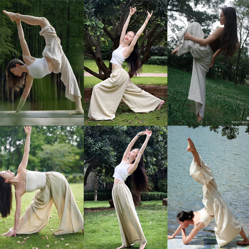 여름 여성을 위한 새로운 스타일의 와이드 팬츠, 하이웨이스트, 슬림하고 루즈한 BF 레이지 스타일 얇은 면과 린넨 바닥 길이 야마모토 팬츠