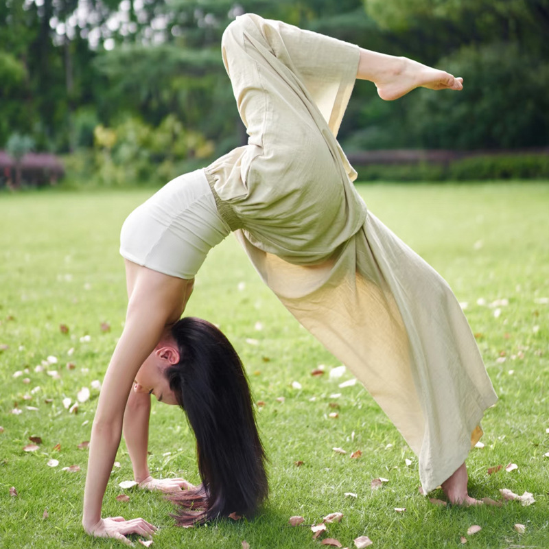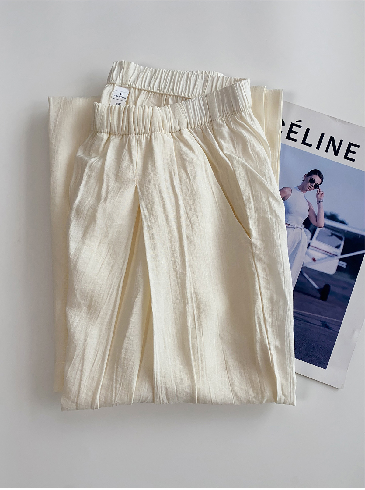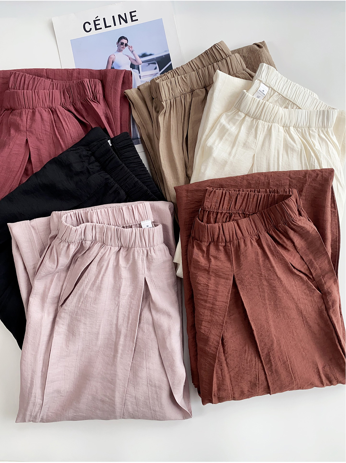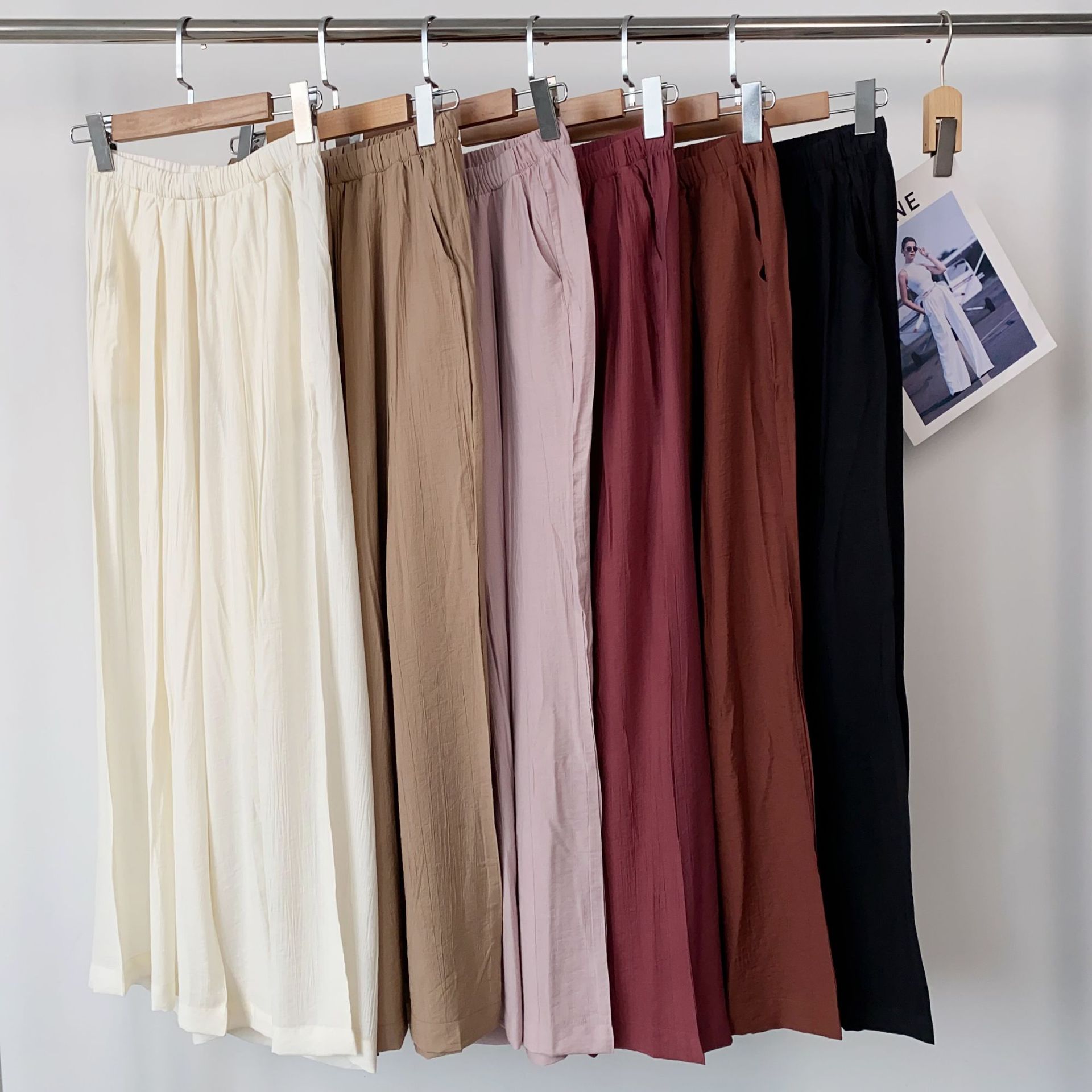 여름 여성을 위한 새로운 스타일의 와이드 팬츠, 하이웨이스트, 슬림하고 루즈한 BF 레이지 스타일 얇은 면과 린넨 바닥 길이 야마모토 팬츠