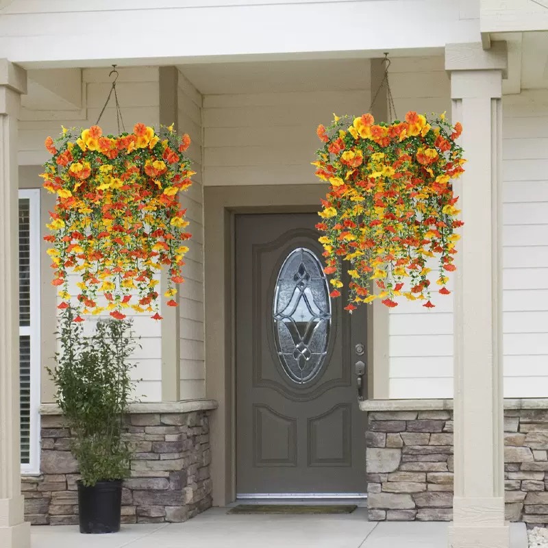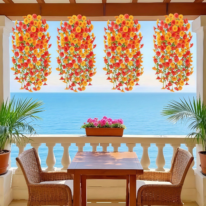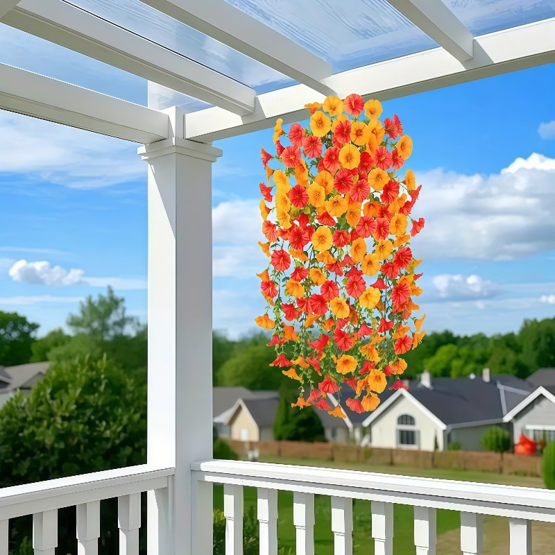 국경 간 아마존 시뮬레이션 유칼립투스 나팔꽃 실크 꽃 가짜 꽃 홈 웨딩 웨딩 장식 벽걸이 등나무 꽃