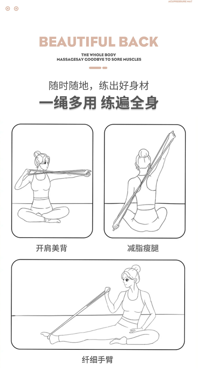 여성용 실리콘 텐션 밴드, 등과 어깨를 펴주는 홈 피트니스 요가 스트레칭 밴드, 8자형 텐션 밴드