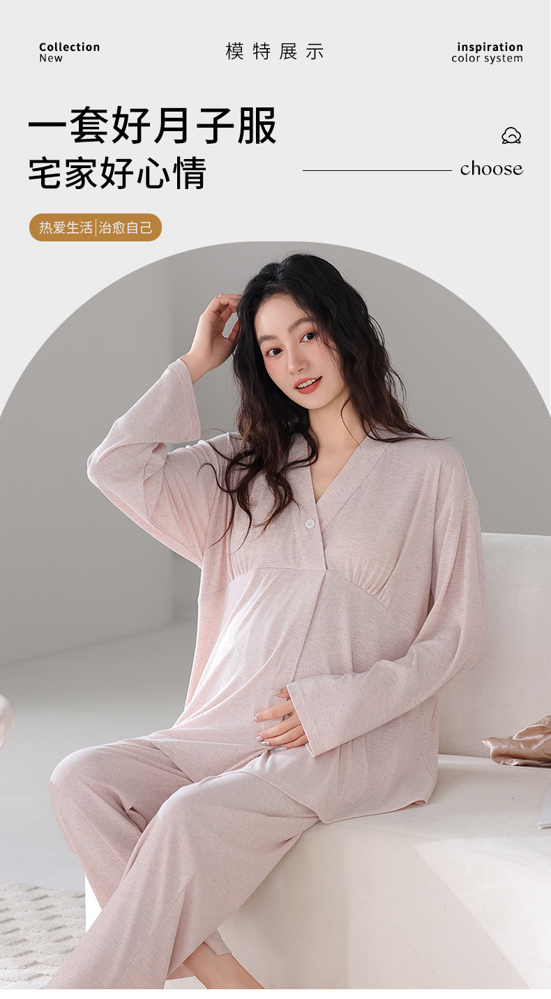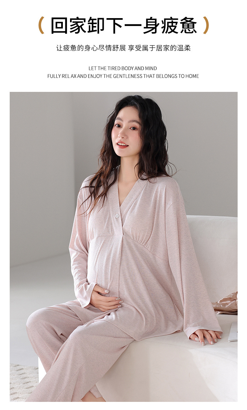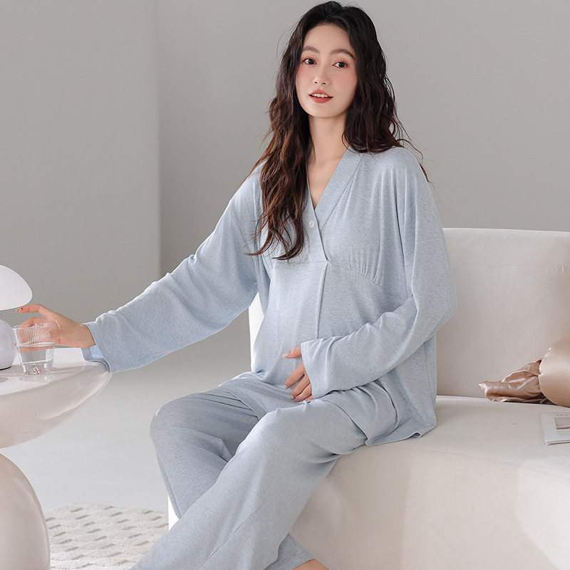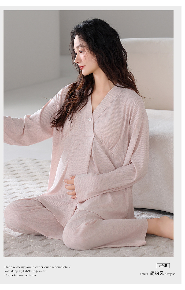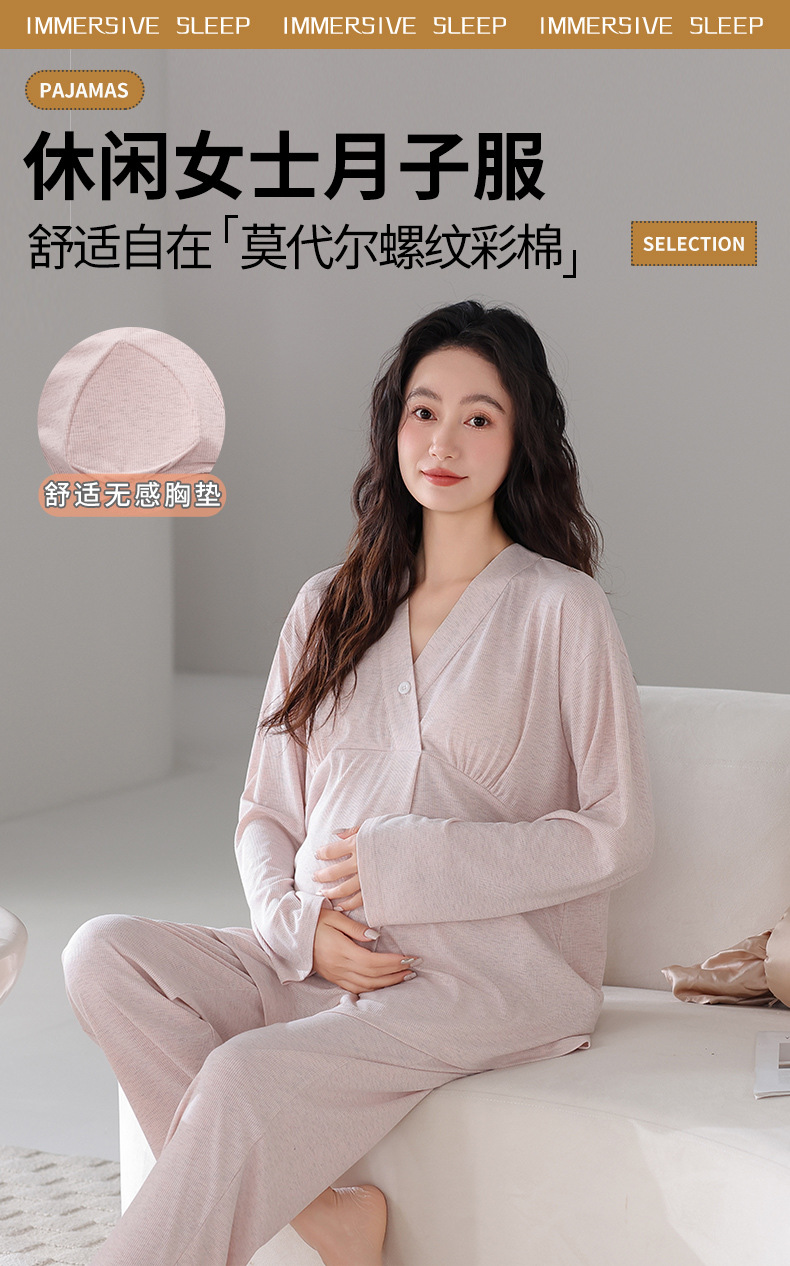 모달 가슴 패드가 있는 산후복 2025 봄 여름 임산부 수유 긴팔 바지 투피스 파자마 세트