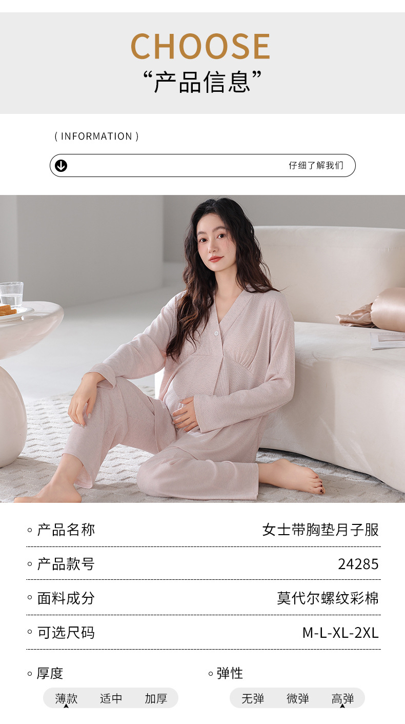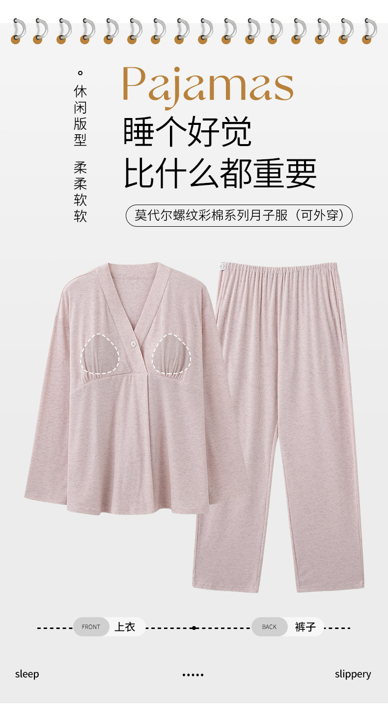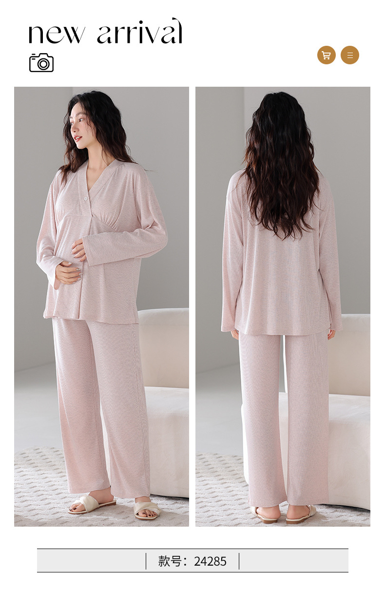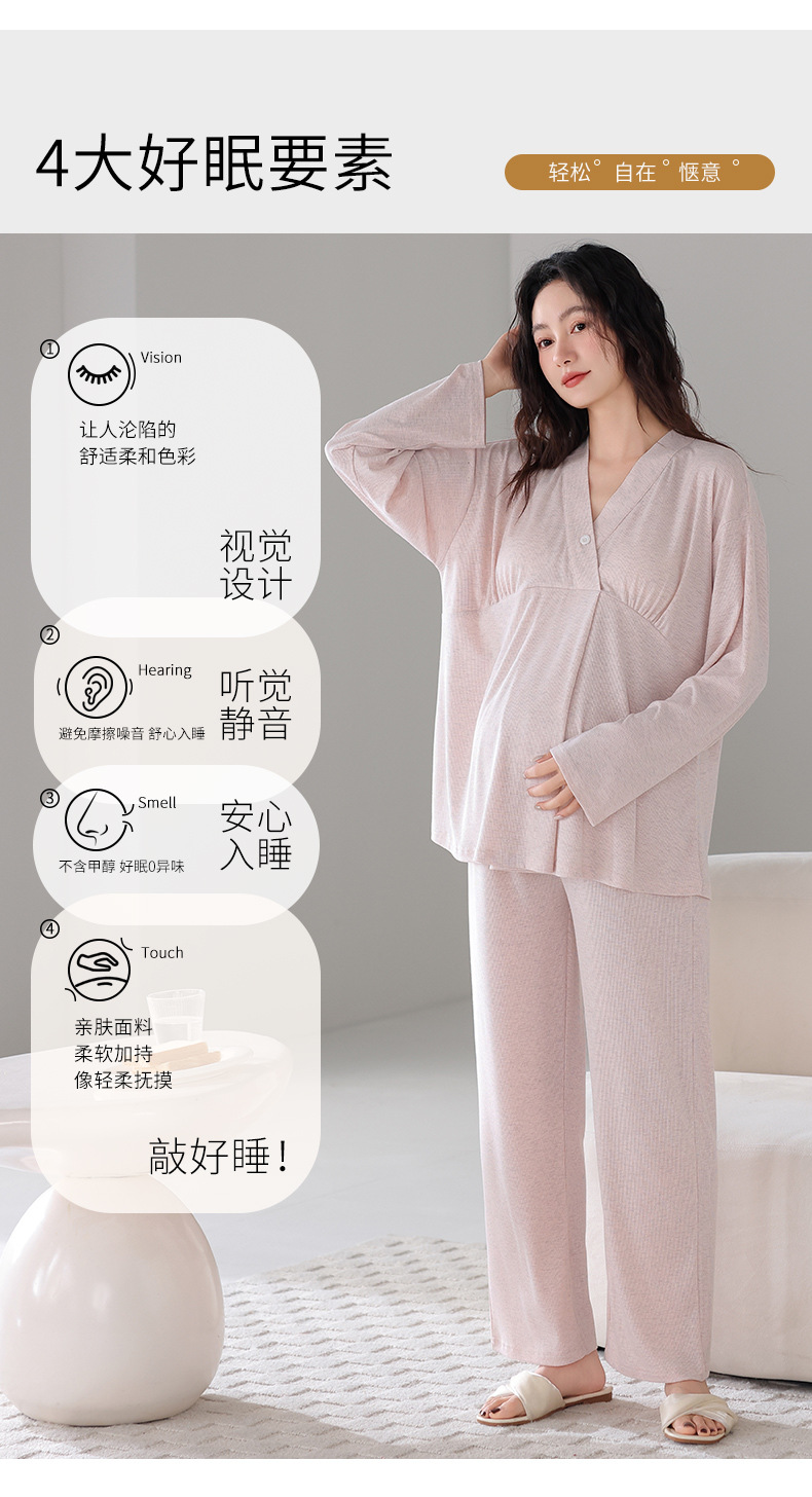 모달 가슴 패드가 있는 산후복 2025 봄 여름 임산부 수유 긴팔 바지 투피스 파자마 세트