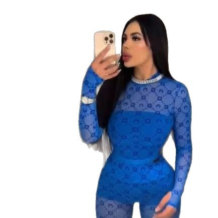 로얄 블루 플록 바닥 셔츠 + 고품질