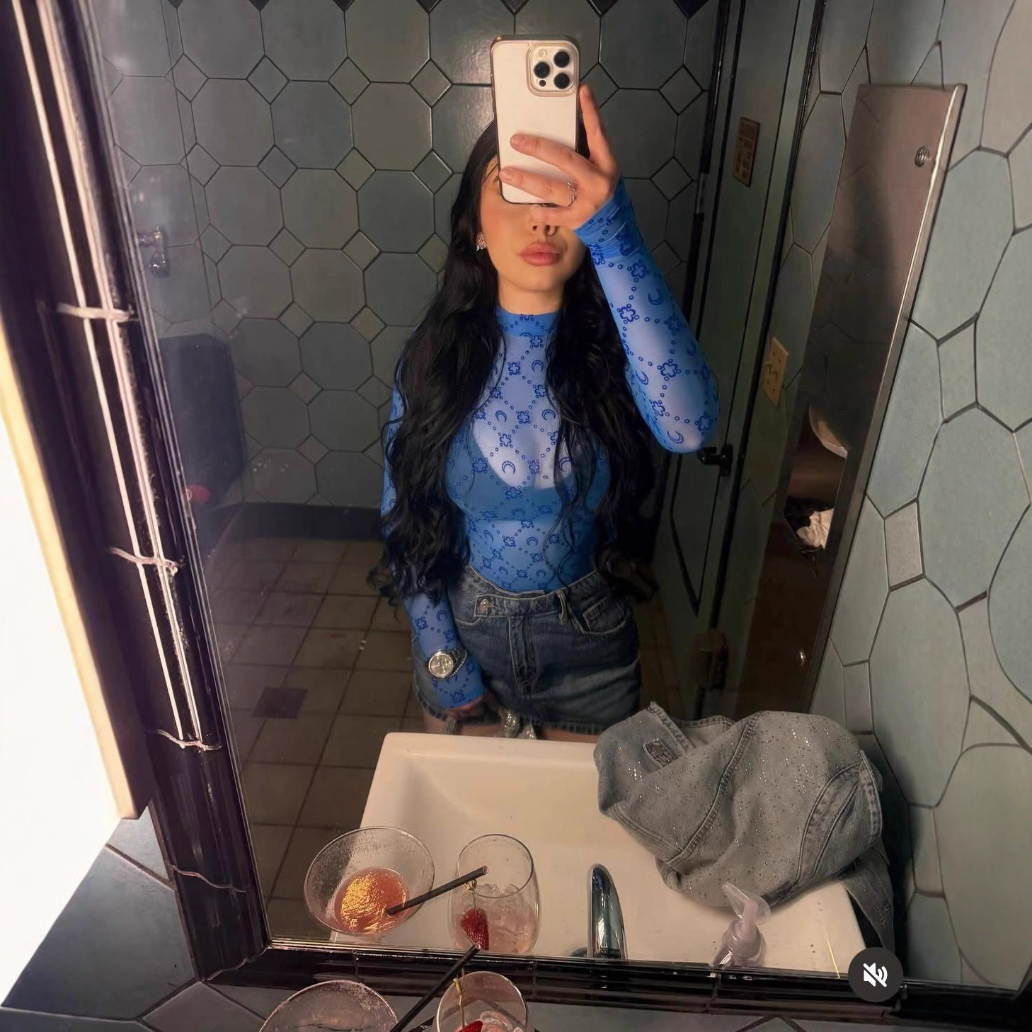컬러풀한 블루 플로킹 바텀 셔츠 + 고품질