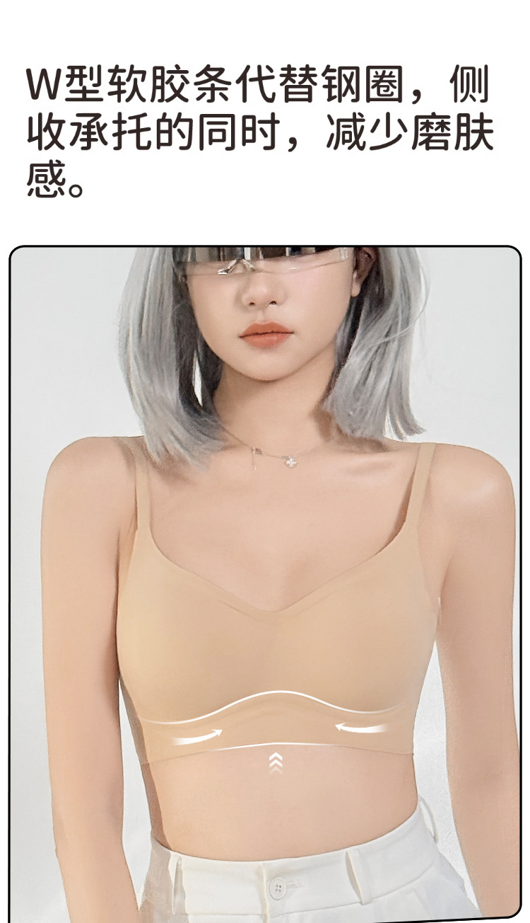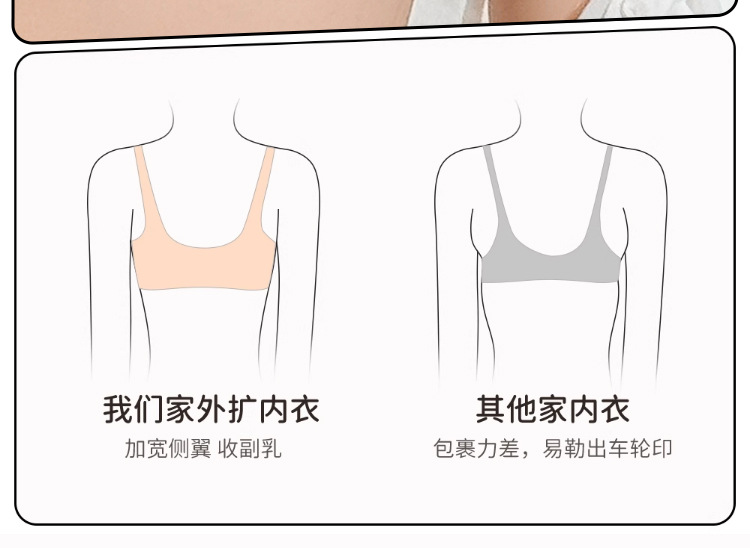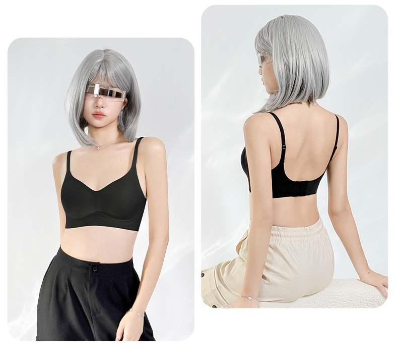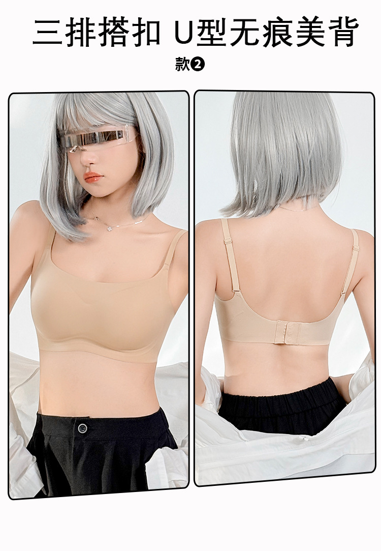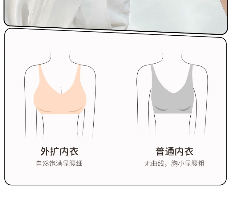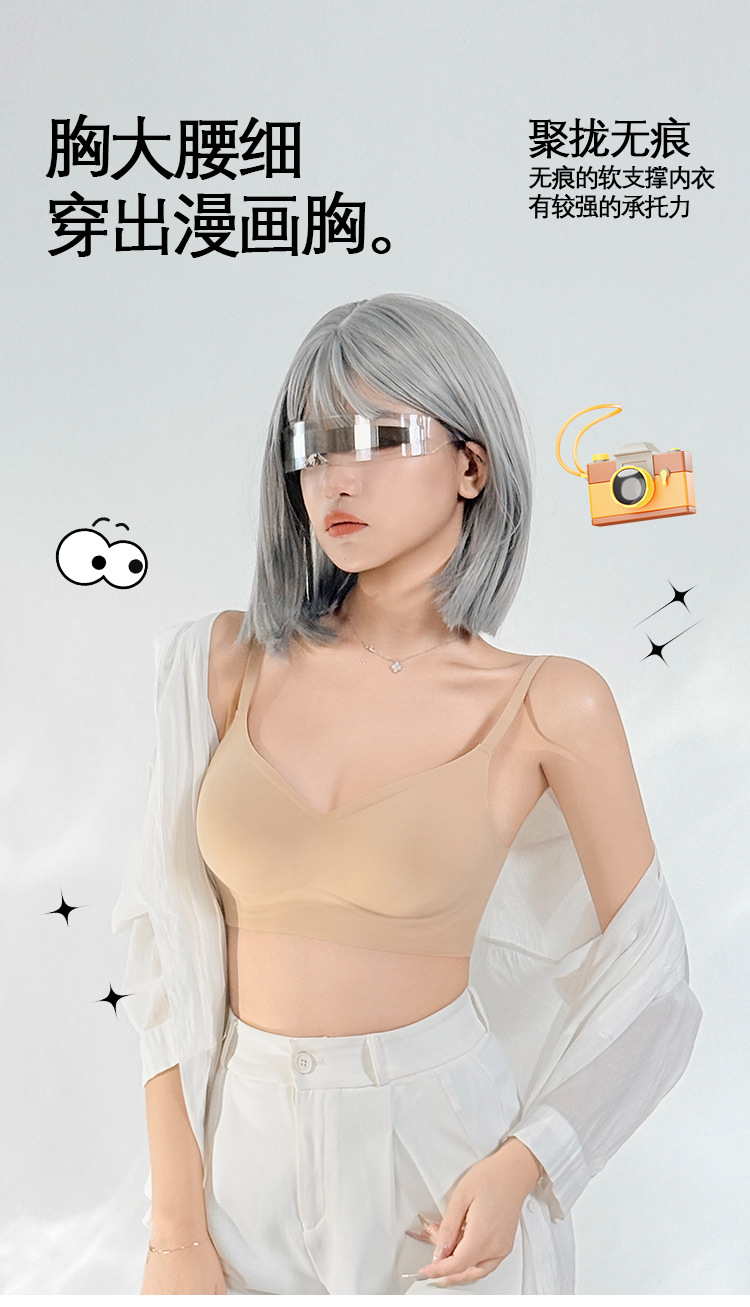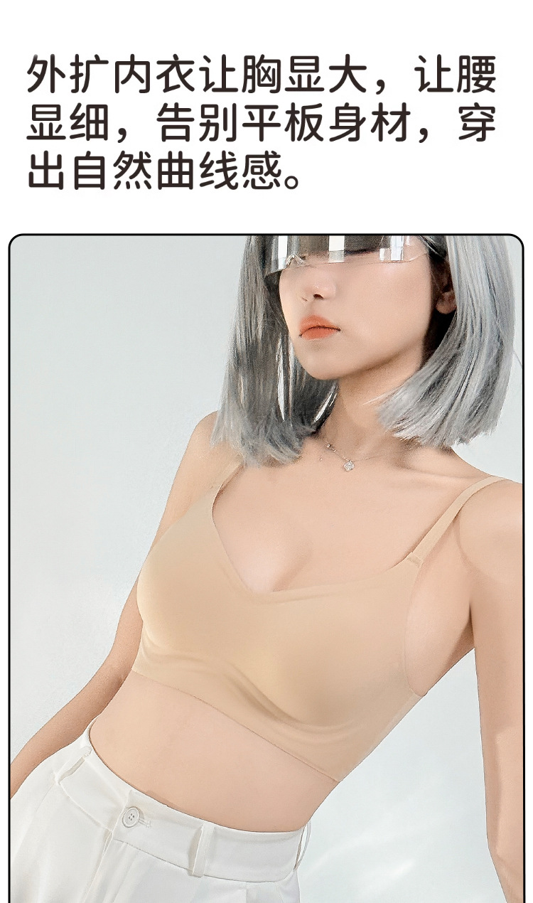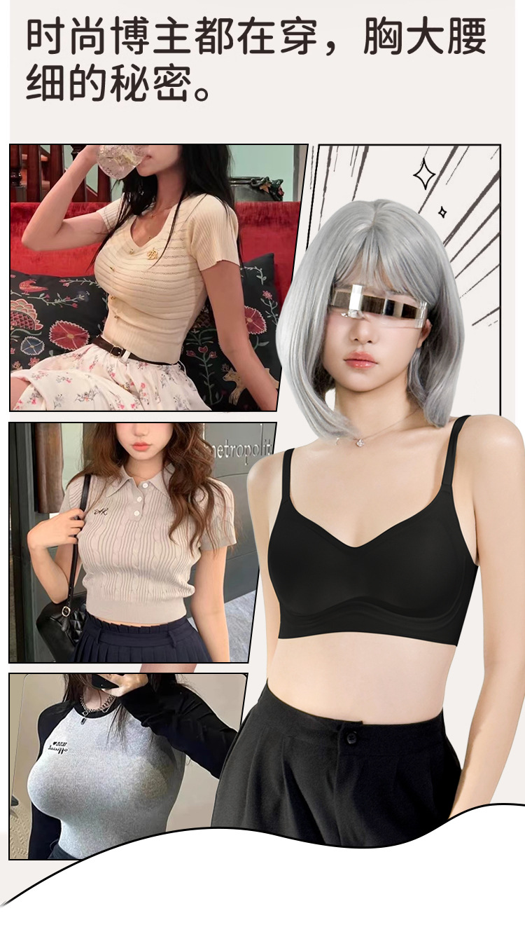 X면과 동일한 스타일의 허브넥 외부 확장형 여성용 브라, 작은 가슴을 모아 더 크게 보이게 하는 만화형 가슴 모양, 와이어 없음, 무봉제 브라