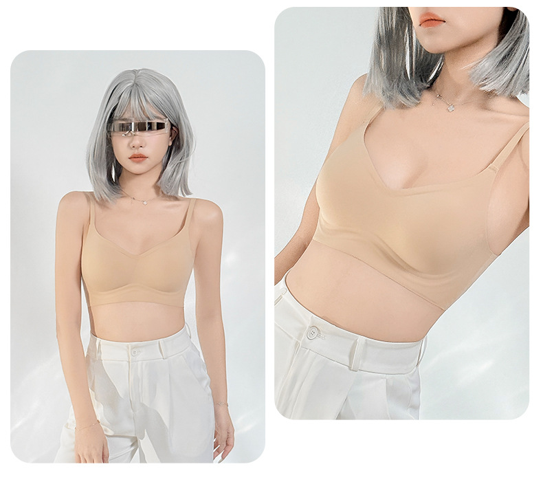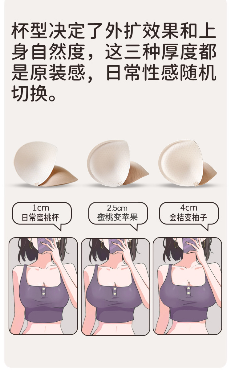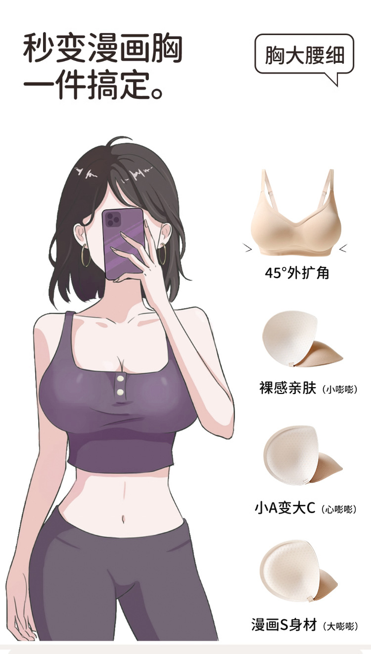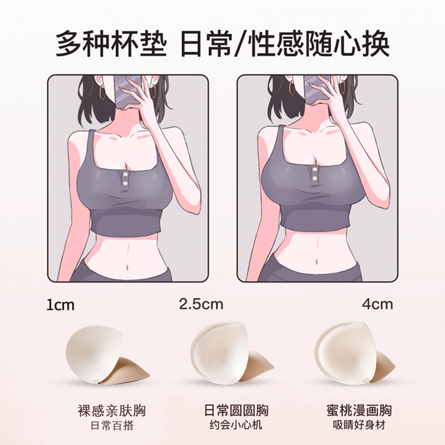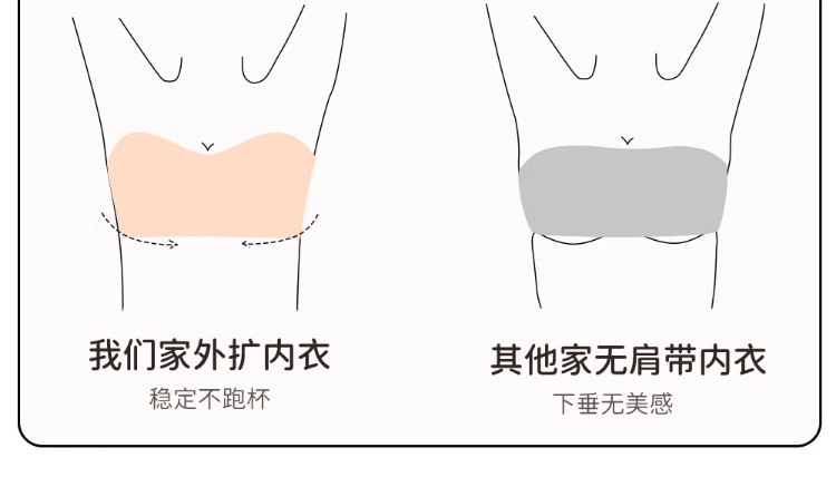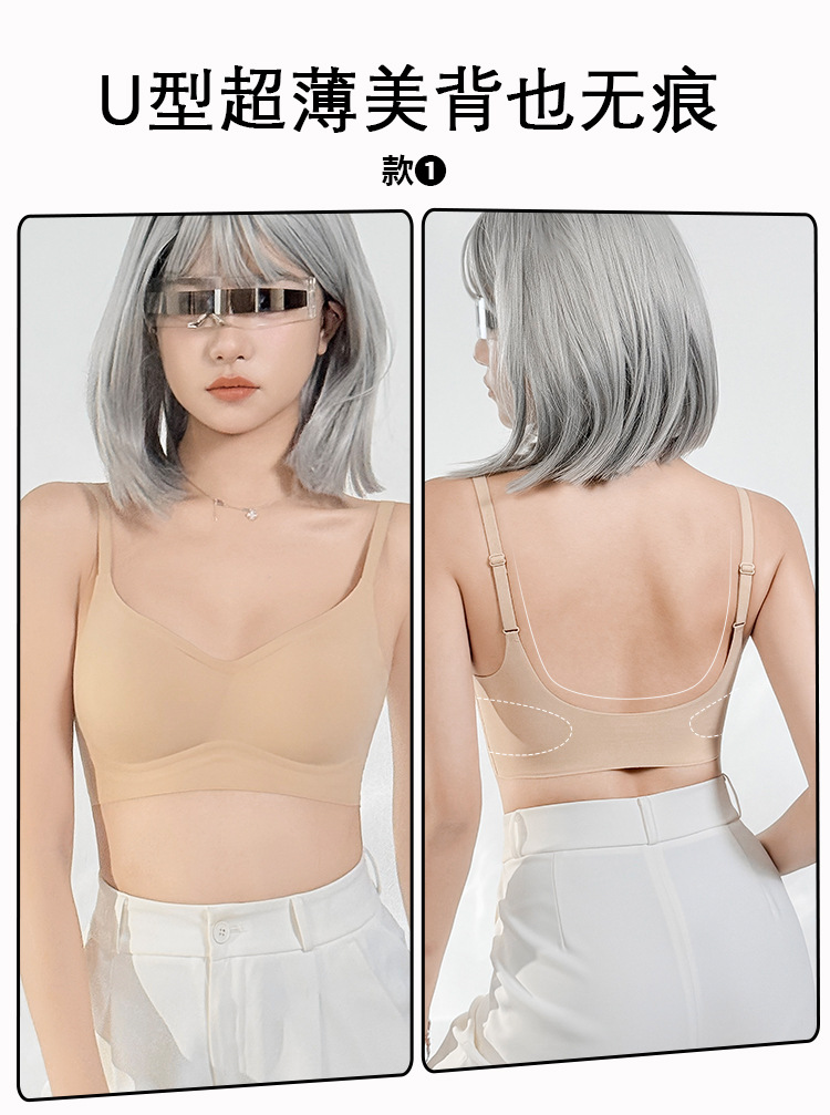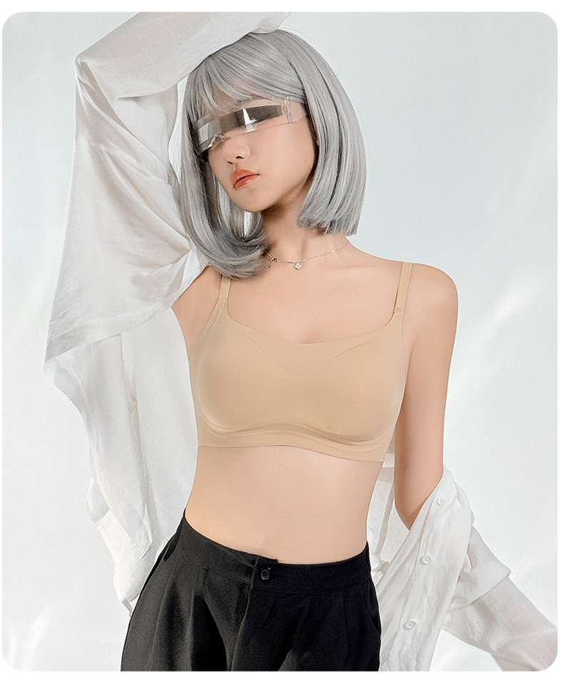 X면과 동일한 스타일의 허브넥 외부 확장형 여성용 브라, 작은 가슴을 모아 더 크게 보이게 하는 만화형 가슴 모양, 와이어 없음, 무봉제 브라