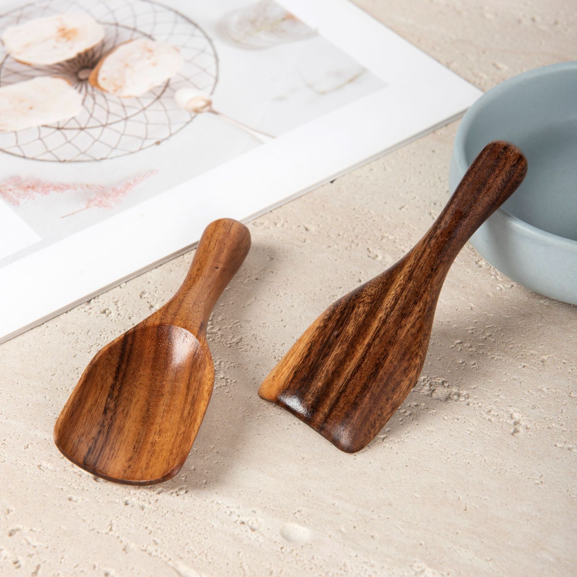 새로운 아카시아 나무 작은 나무 숟가락 둥근 손잡이 토양 주걱 커피 스푼 단단한 목재 목욕 소금 스푼 콩 약 분말 측정 스푼 차 스푼