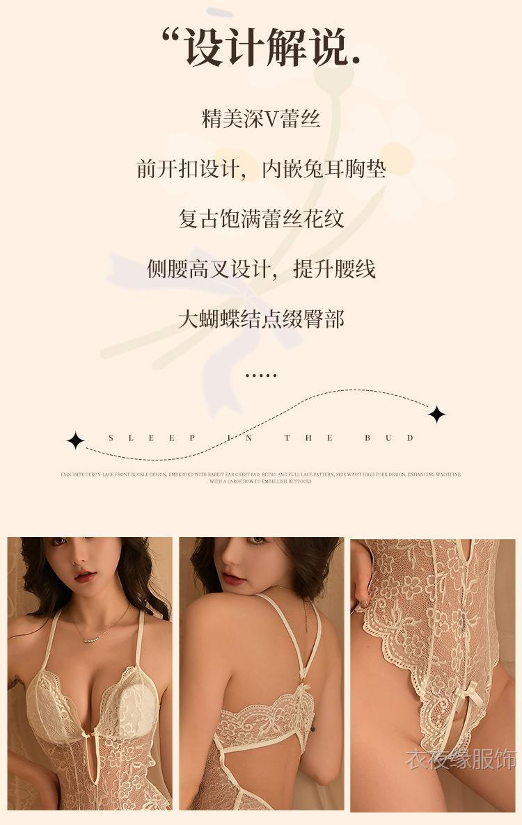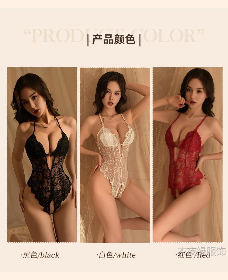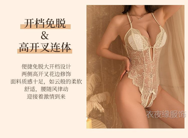 Yiyeyuan 섹시한 속옷, 섹시한 레이스 유혹 오픈 점프 슈트, 여성용 핫 시스루 잠옷, 탈부착 가능한 유니폼 없음